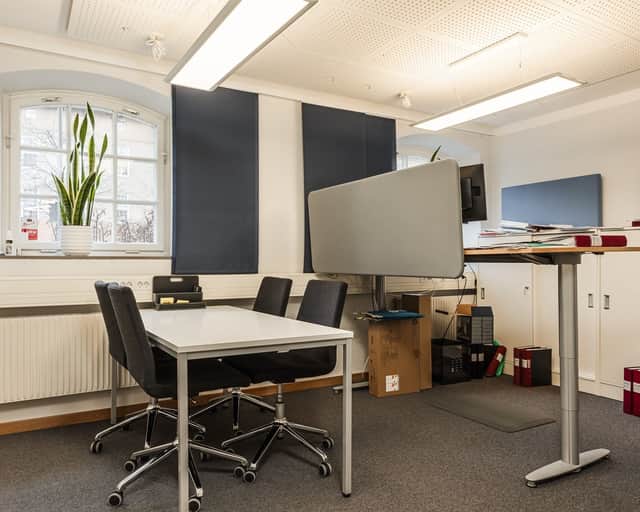 Här finns även ett större konferens- och mötesrum, perfekt för att hålla effektiva möten och presentationer. Den väl tilltagna pausyta med anslutande pentry skapar en trivsam atmosfär där medarbetarna kan koppla av och umgås. Det finns också plats för skrivare och kopiering, vilket gör det enkelt att hantera kontorsadministration. Dessutom har lokalen ett större kapprum med två anslutande toaletter, varav en är handikappanpassad, vilket ger extra bekvämlighet för både anställda och besökare.