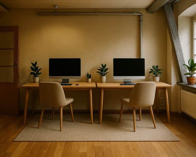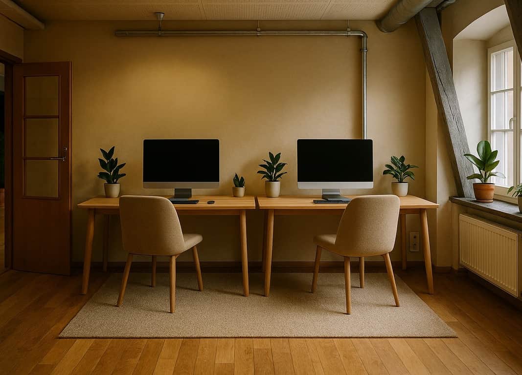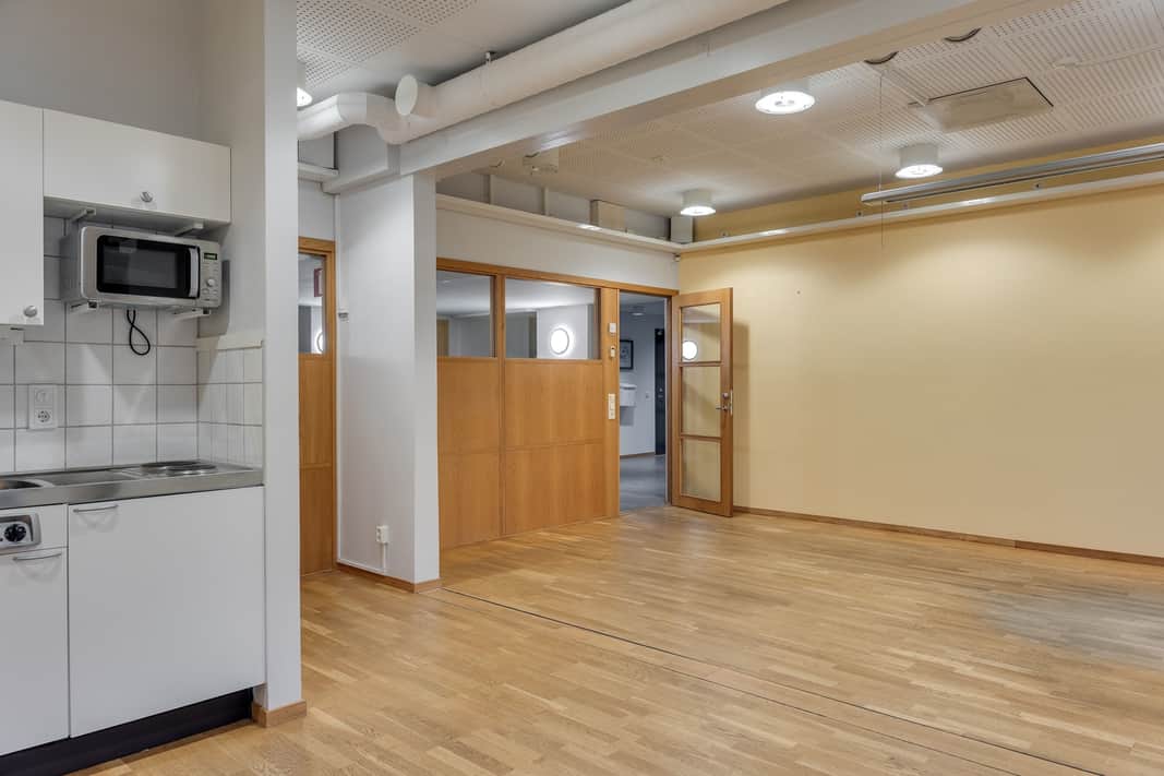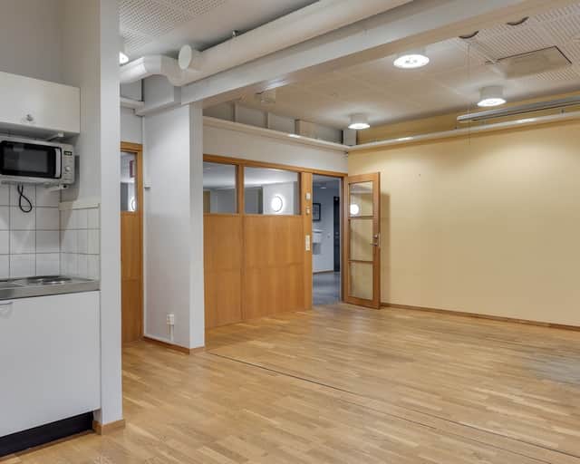 En unik vindsvåning som är ljus och charmig med synliga bjälkar med en öppen yta. Här finns tillgång till ett litet pentry, WC samt en öppen yta för kontorsplatser. Lokalen är i en perfekt storlek för det mindre företaget.
