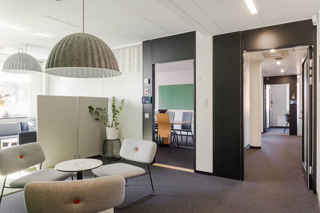 Kontoret rymmer totalt 21 kontor samt samtals och mötesrum i varierande storlekar, vilket ger goda förutsättningar för såväl koncentrerat arbete som effektiva möten. Därtill finns en större öppen arbetsyta som lämpar sig väl för projektarbete eller samarbete mellan team. Den rymliga och inbjudande pausytan med anslutande pentry blir en naturlig samlingspunkt i vardagen.