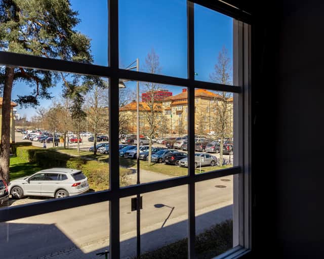 Det finns ca 1 000 parkeringsplatser och en mängd laddplatser varav ett antal drivs av vår egna solcellsanläggning. Man tar sig enkelt ut på det stora utfartslederna och till Småland Airport. Goda parkeringsmöjligheter för de som väljer att ta cykeln.