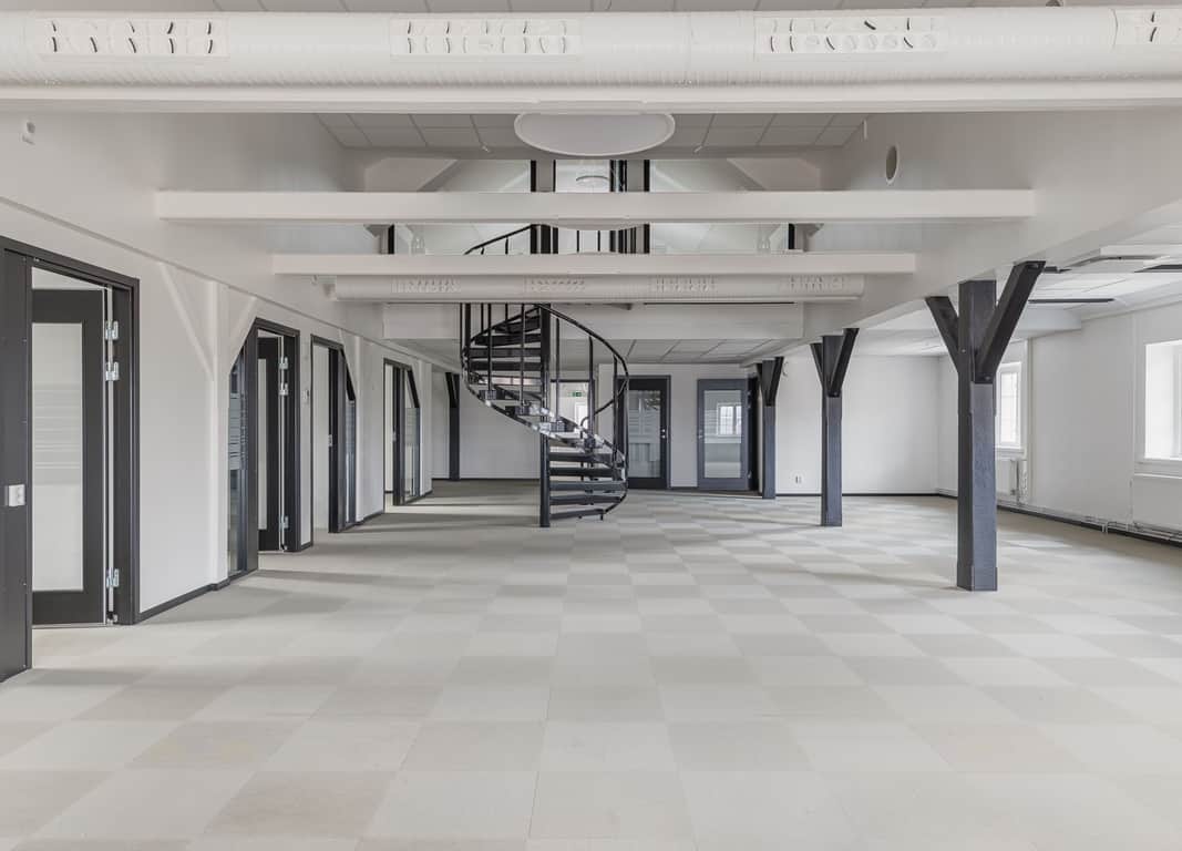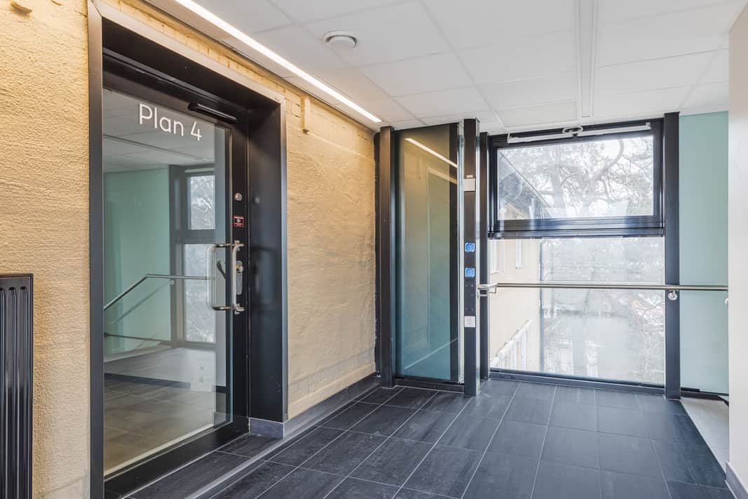 Planlösningen för kontorslokalen på Reveljgränd 9 är både flexibel och välgenomtänkt, vilket gör den idealisk för olika typer av verksamheter. Lokalen om 365 kvm är belägen på plan 4 och erbjuder en kombination av öppna arbetsytor och avskilda kontorsrum. De öppna ytorna skapar en social och samarbetsvänlig miljö, samtidigt som de separata kontoren ger möjlighet till ostört och fokuserat arbete.