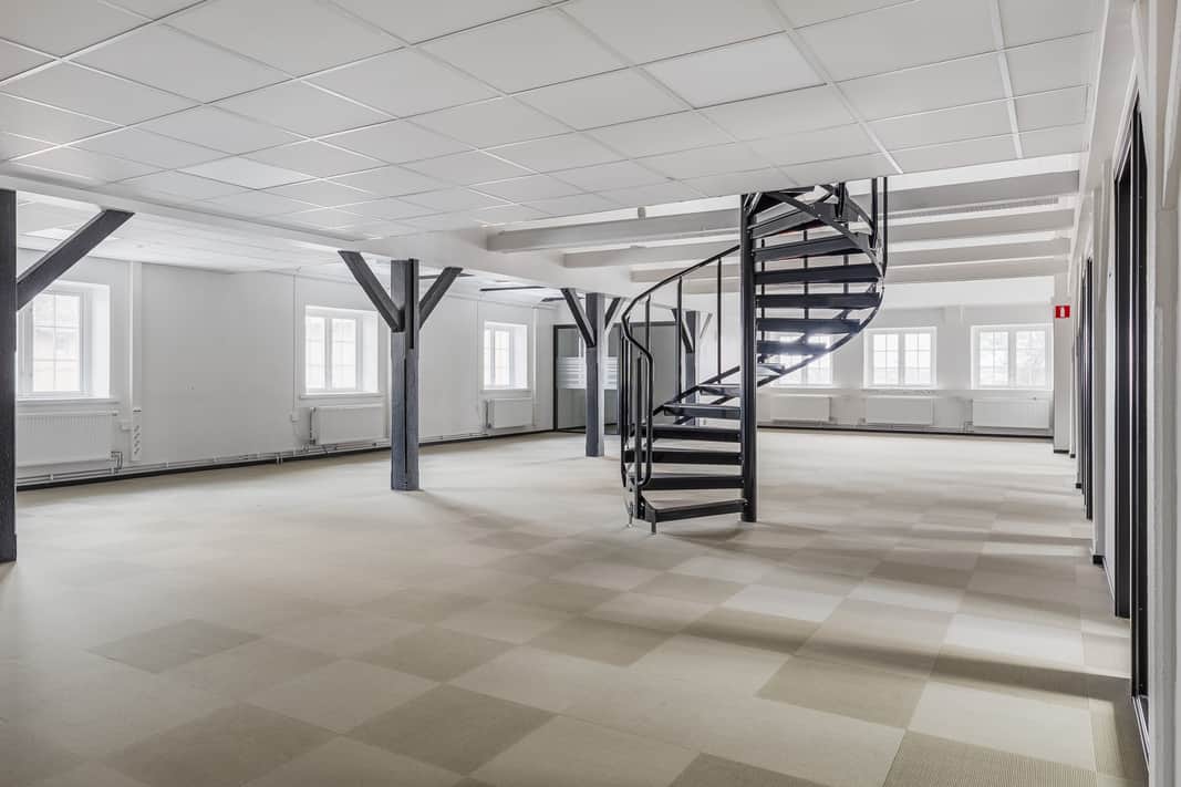 Planlösningen är både flexibel och genomtänkt, vilket gör att lokalen passar många olika typer av verksamheter. Här finns generösa öppna arbetsytor som främjar samarbete och spontana möten mellan kollegor, samtidigt som det finns avskilda kontor för den som behöver lugn och fokus. Flera mötesrum ger möjlighet till både mindre och större möten, och ett av dessa är placerat en våning upp med en fantastisk utsikt över det öppna landskapet – en perfekt plats för kreativa workshops, strategiska samtal eller viktiga kundmöten. Den smarta planlösningen gör det enkelt att anpassa lokalen efter just ditt företags behov, oavsett om ni är ett mindre team eller en större organisation.