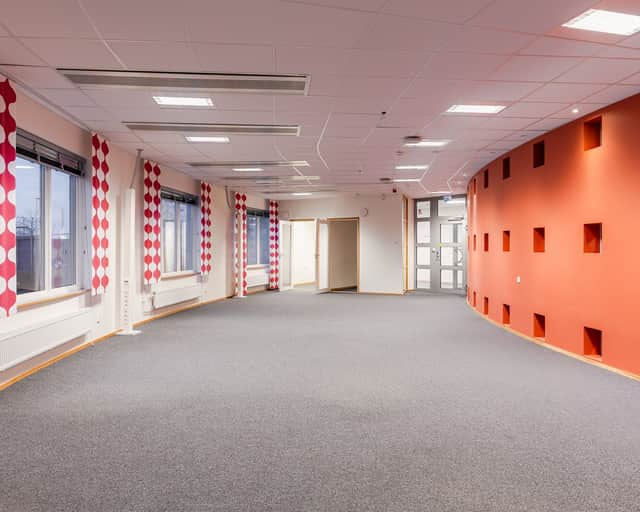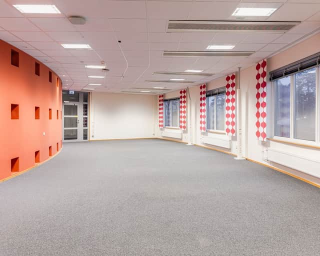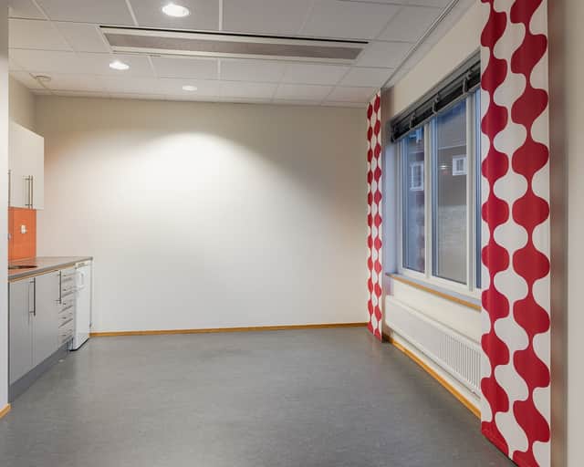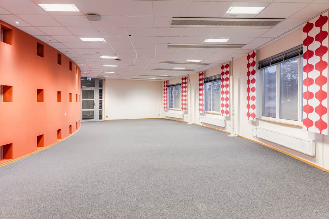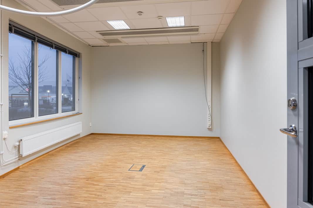 Kontorslokalen har en öppen arbetsyta som rymmer många arbetsplatser samt två samtalsrum. Den något rundade formen ger lokalen ett inbjudande intryck och det är lätt att skapa rum i rummet. Det finns även möjlighet att inkludera ett konferensrum i direkt anslutning för eget bruk. Kontoret är lättillgängligt, ljust, effektivt och håller hög standard.