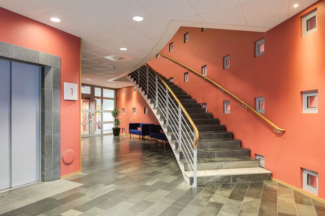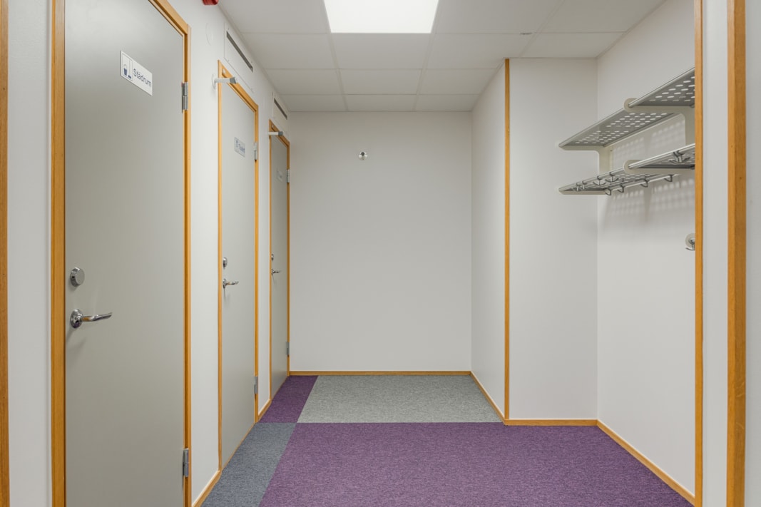 Lokalen har två entréer med anslutande kapprum och toalettpaket. Större pentry med tillhörande pausyta där samtliga medarbetare har plats att samlas för att avnjuta en god lunch tillsammans. Kontor och mötesrum finns i varierande storlekar, samt stora öppna kontorslandskap med härlig utsikt och plats för många medarbetare. Tillgång till en stor gemensam takterrass med vacker utsikt, där det både går lika bra att ta en avslappnande kaffepaus som att ha företagsevent. Utmärkt för företaget som söker en inspierande och flexibel lokal i ett av Växjös populäraste områden.