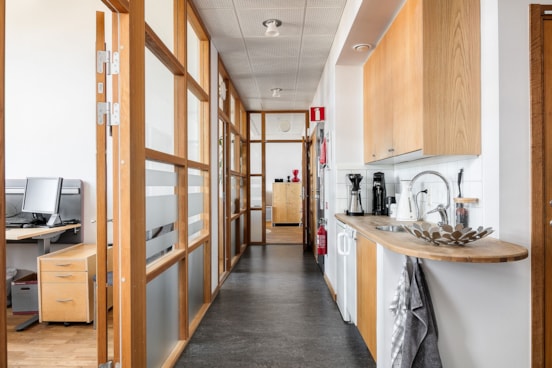 Väl tilltagna öppna ytor i kombination med mötesrum, skapar goda möjligheter att anpassa arbetssättet utifrån er verksamhet. Lokalen är har ett fantastiskt ljusinsläpp, vilket tillsammans med de stora öppna ytorna skapar en härlig rymd. Materialval av hög kvalitet genomsyrar hela lokalen.