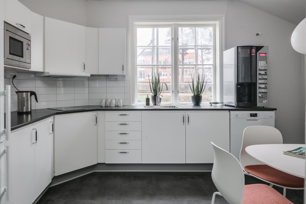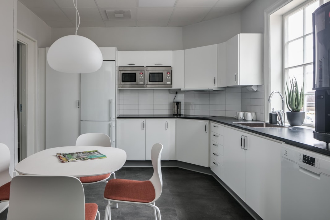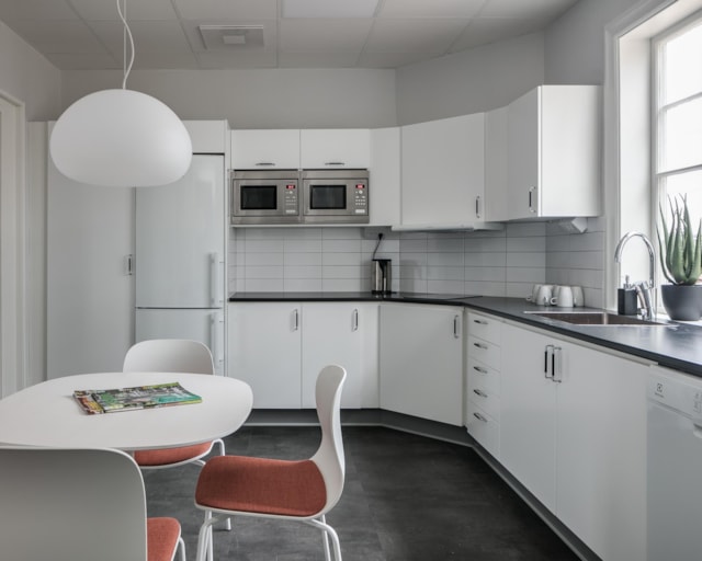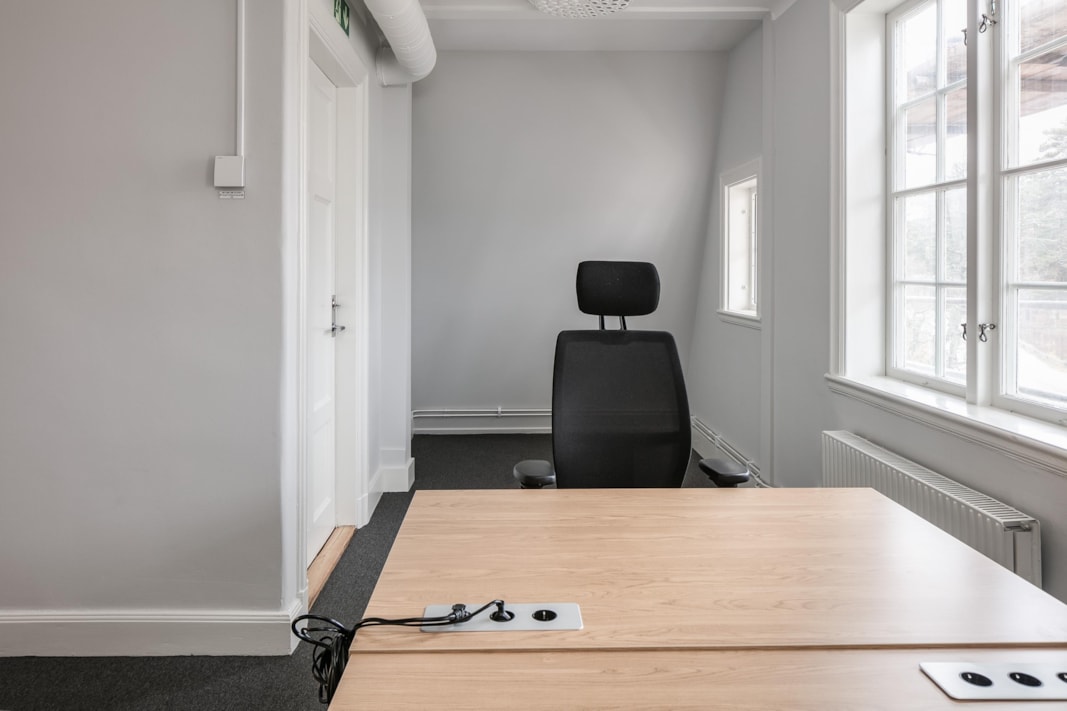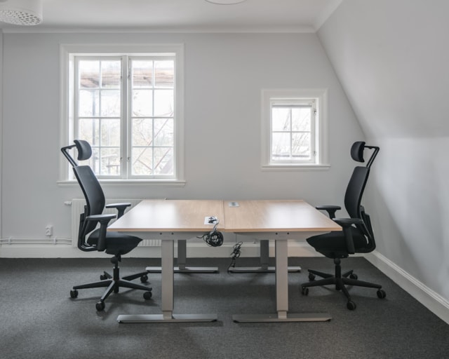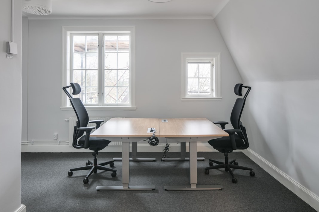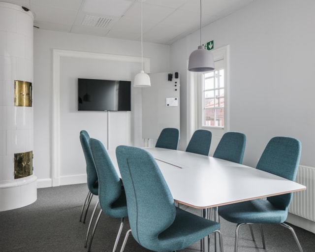 Villans övervåning består av 3 lediga rum med plats för 7 arbetsplatser samt egen WC. PÅ entréplan har ni möjlighet att ha möten i det charmiga konferensrummet samt nyttja ett delat kök.