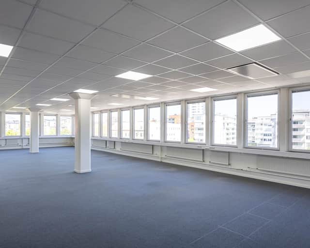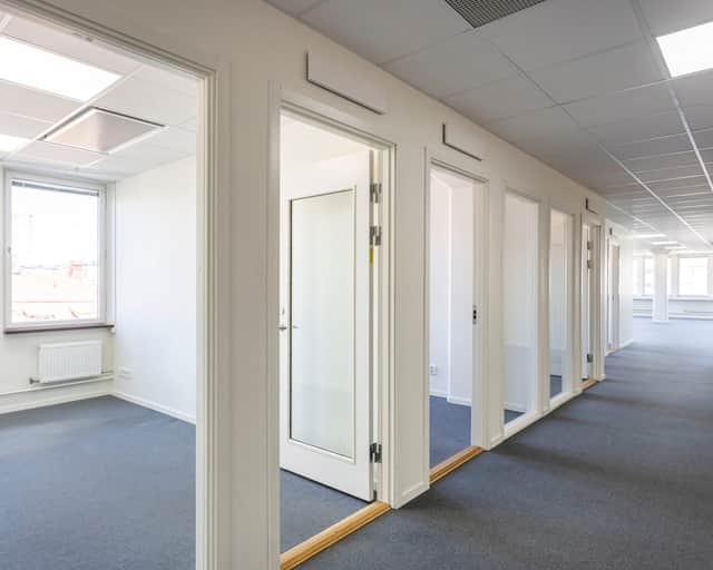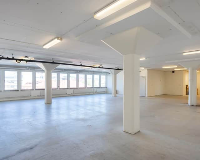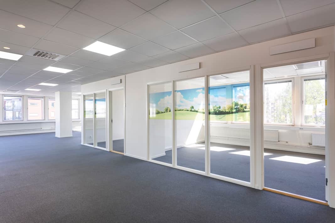 Kontorsdelen är separerad från lagret med en dörr och erbjuder en trivsam arbetsmiljö med utsikt över vackra Bällstaån. Här finns fina ytskikt och en modern känsla – perfekt för att skapa ett professionellt intryck för både medarbetare och besökare.