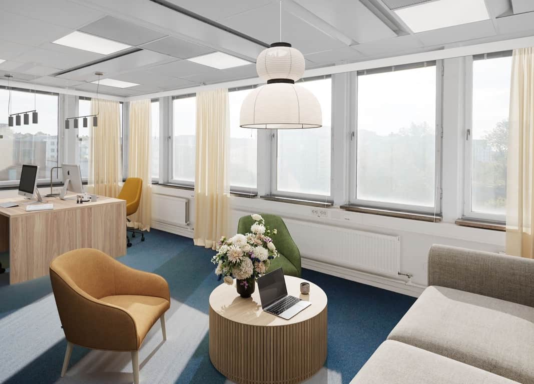 Fint kontor med fönster i alla väderstreck