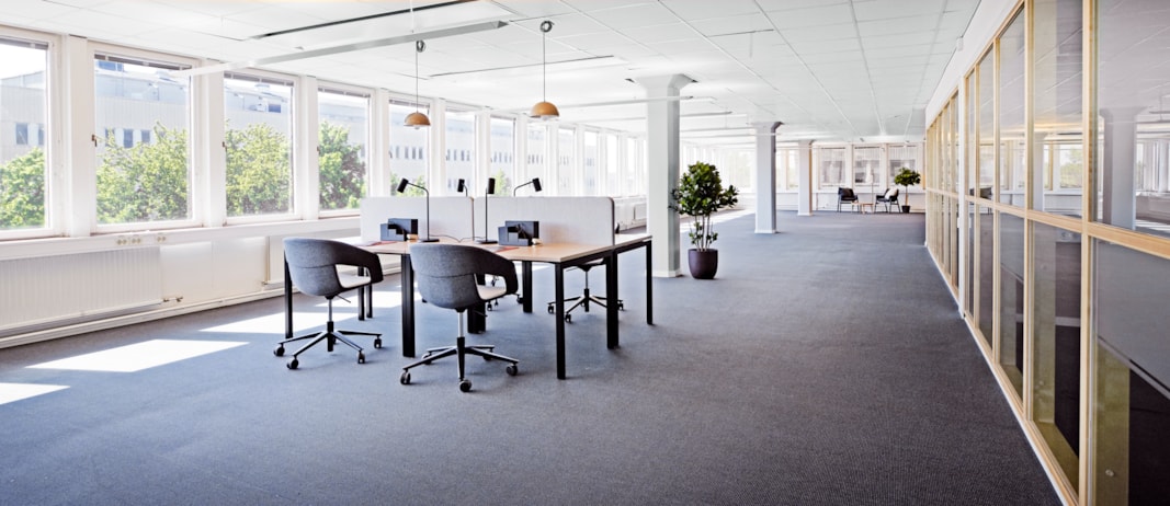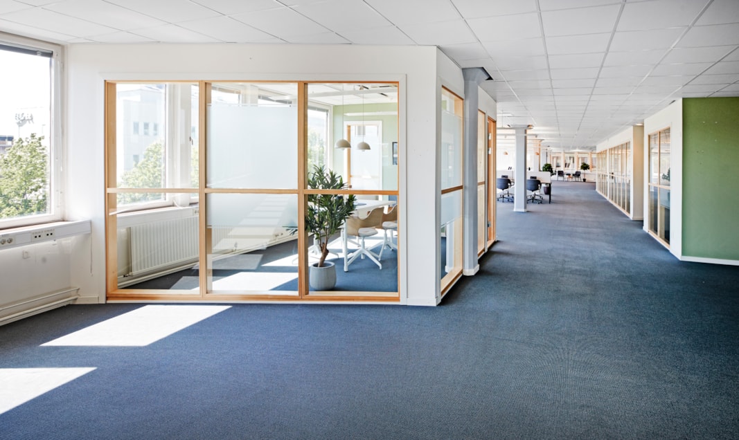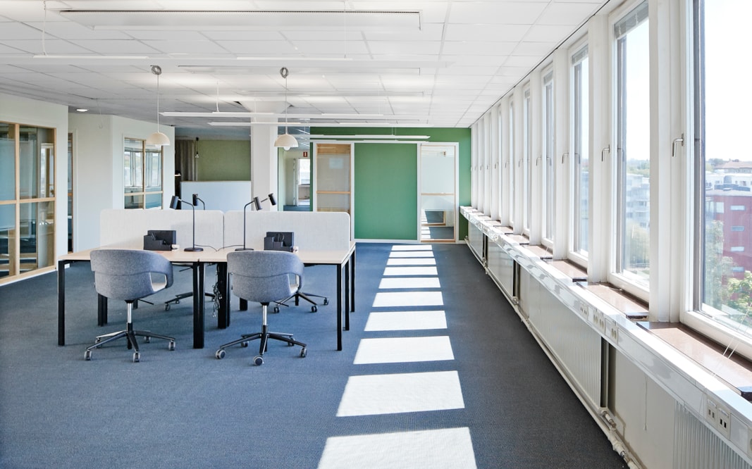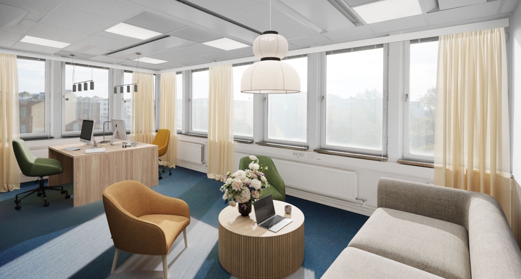Fint kontor med fönster i alla väderstreck