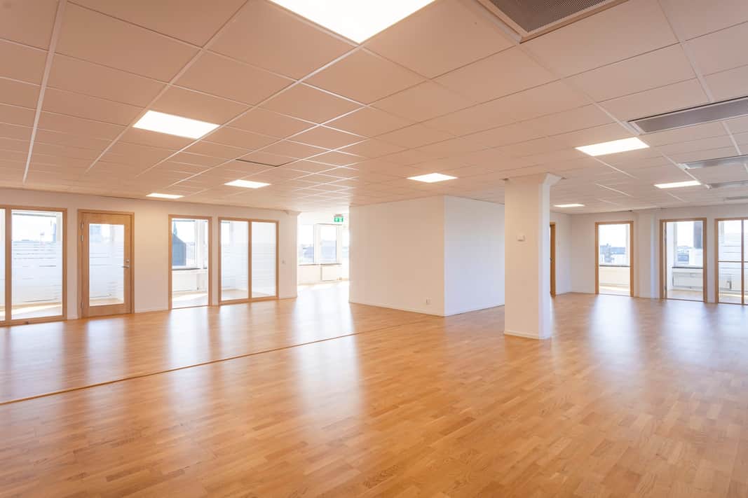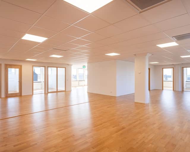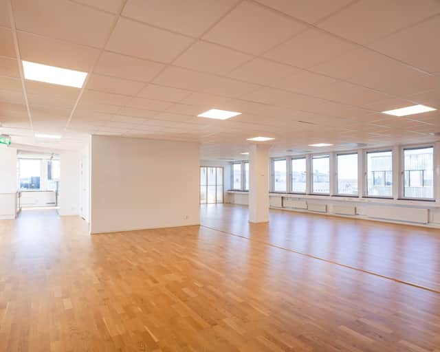 Lokalen har en öppen planlösning som skapar en luftig arbetsmiljö, med möjligheten att tillskapa fler mötesrum.