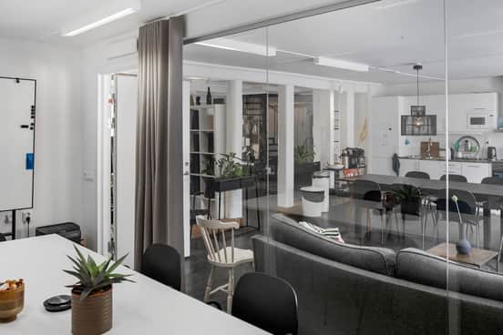 Högst upp i fastigheten ligger denna lokal i vinkel. Kontorslokalen har anpassats för att främja samarbete och idégenerering. Den har öppna ytor, flexibla arbetsutrymmen och inspirerande mötesrum. En väl genomtänkt layout kan underlätta spontana samarbeten och främja kreativt tänkande.