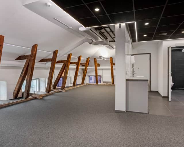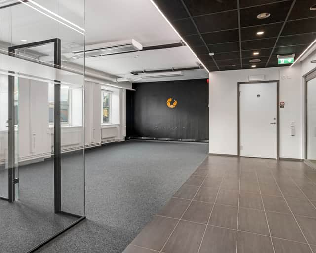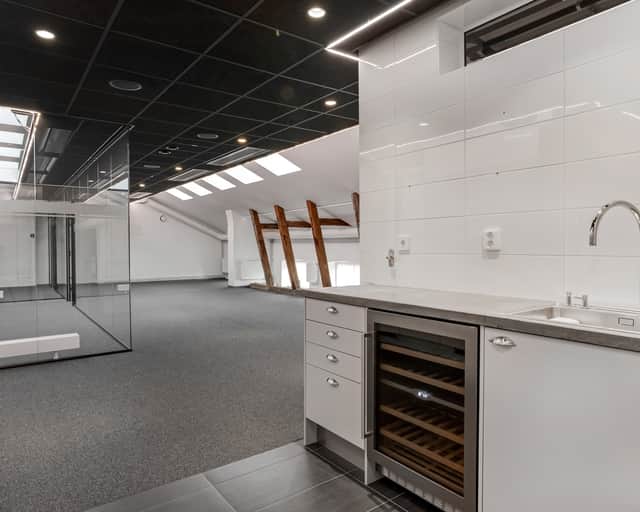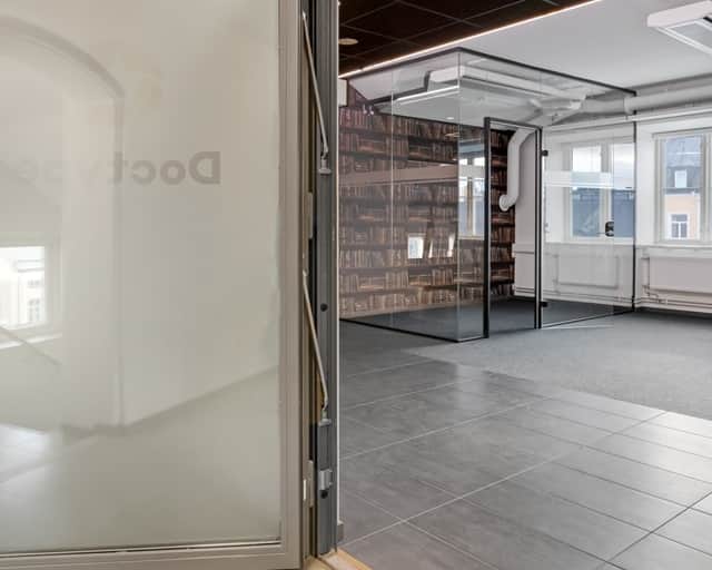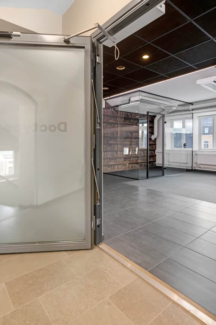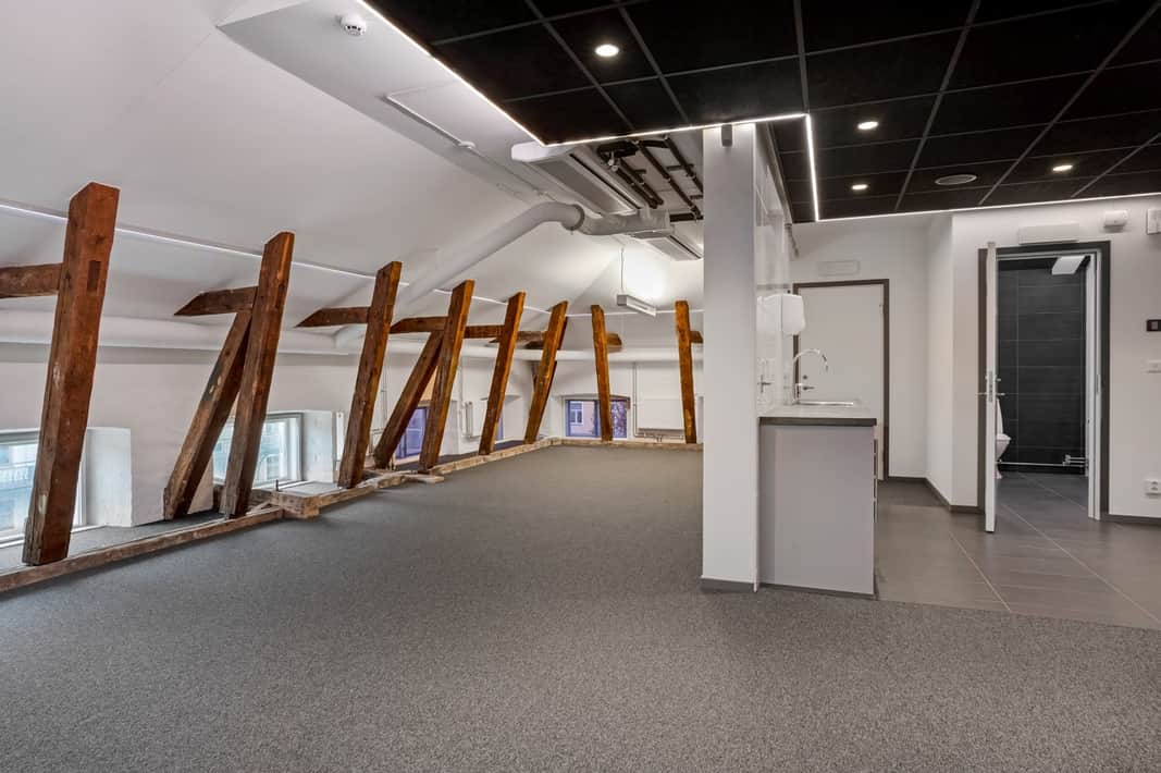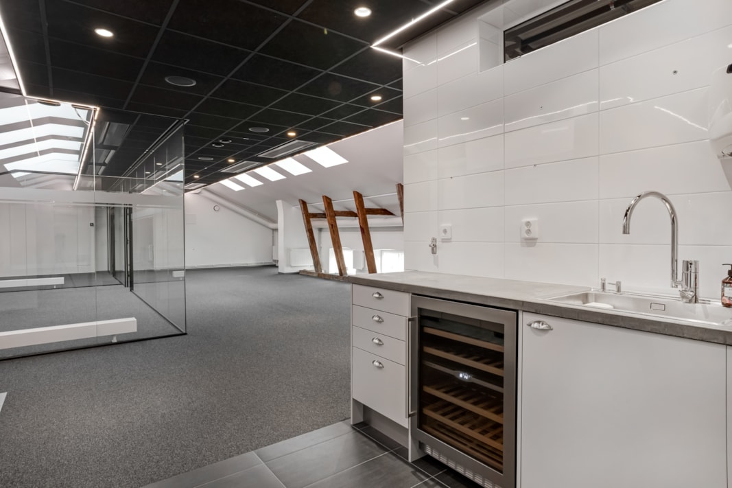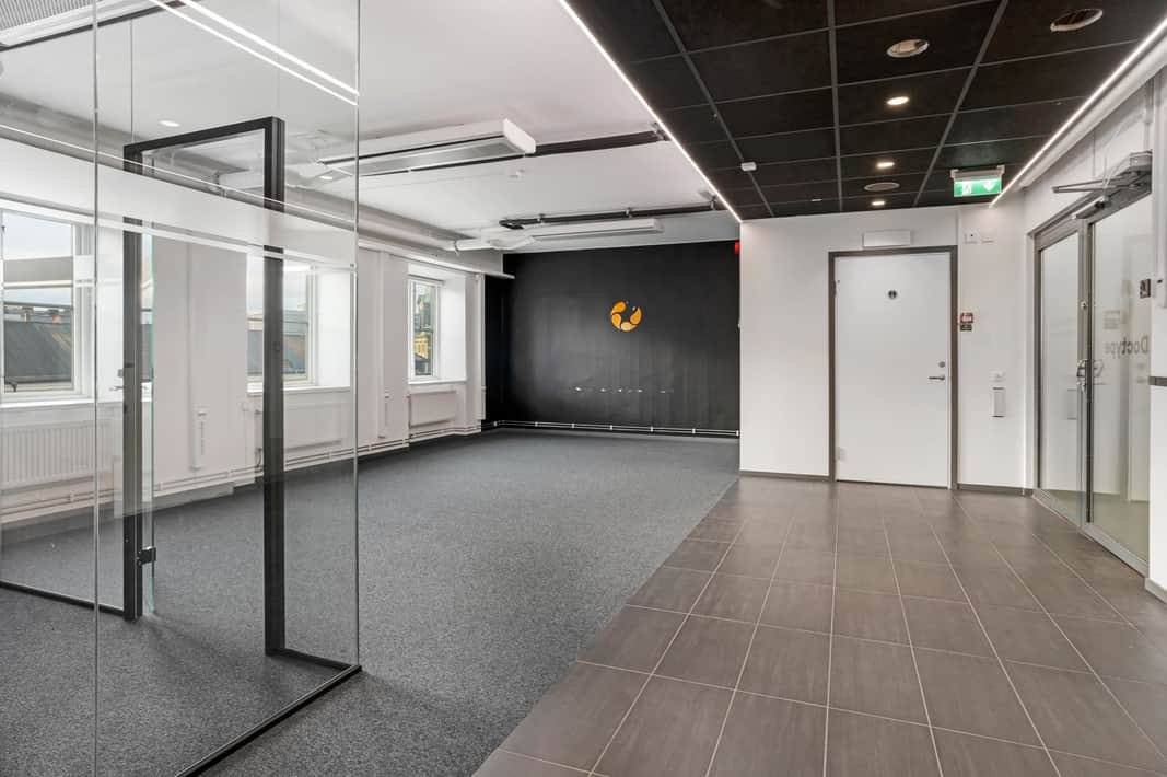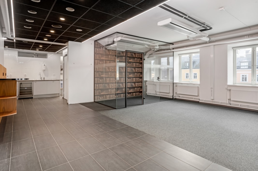 Högst upp i fastigheten ligger denna lokal i vinkel. Kontorslokalen har anpassats för att främja samarbete och idégenerering. Den har öppna ytor, flexibla arbetsutrymmen och inspirerande mötesrum. En väl genomtänkt layout kan underlätta spontana samarbeten och främja kreativt tänkande.