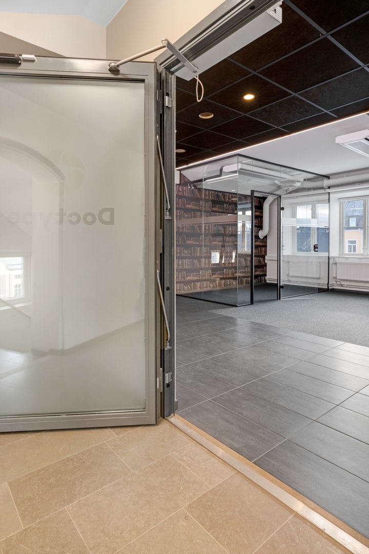 Gamla Rådstugan har en unik atmosfär som ger en inspirerande miljö för kreativitet. Den historiska byggnaden och charmiga detaljer skapar en känsla av karaktär och ger en kontrast till denna moderna kontorslokal. Entrén med det vackra historiska torget ett stenkast från Motala ström är lika inspirerande som lokalen.