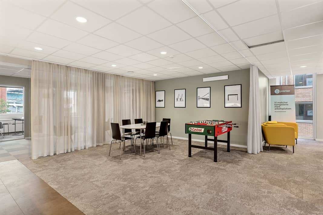 Välkommen till en modern och trivsam kontorslokal om 259 kvm belägen i hjärtat av Gårda. Lokalen har en öppen och social planlösning som skapar en ljus och luftig arbetsmiljö, perfekt för företag som värdesätter samarbete och kommunikation. Här finns även ett separat kontorsrum för mer fokuserat arbete samt flera konferensrum och fokusrum.