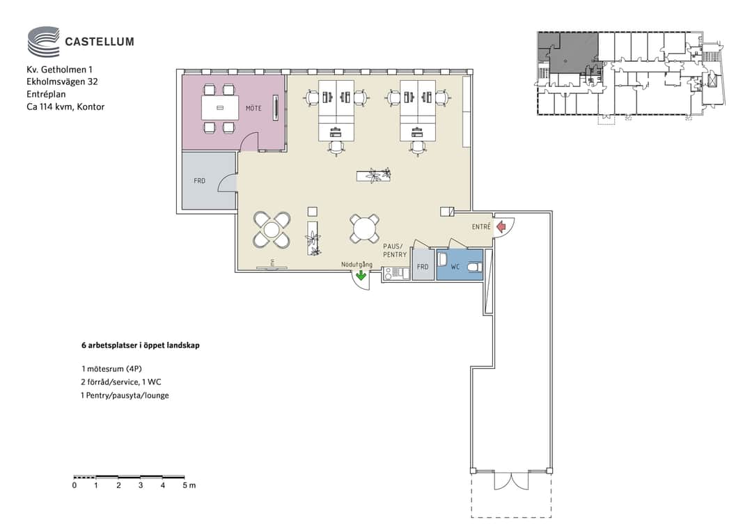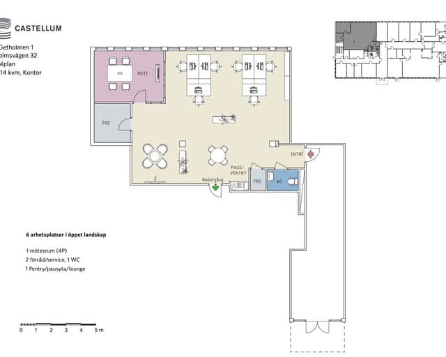 Här får ni som hyresgäst ett härligt öppet kontorslandskap med arbetsplatser för ca 6 medarbetare. Lokalen erbjuder ett mötesrum och två mindre förråd för förvaring.