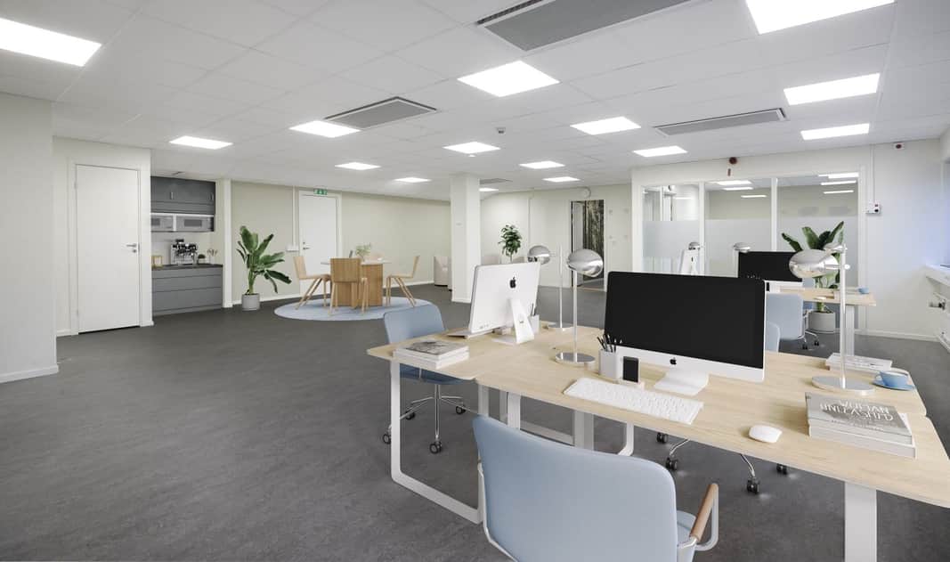 Lokalerna har genomtänkta planlösningar med öppna arbetsytor kombinerat med mötesrum, pentry och WC. Generösa fönsterpartier ger ett fint ljusinsläpp och bidrar till en trivsam och produktiv arbetsmiljö.