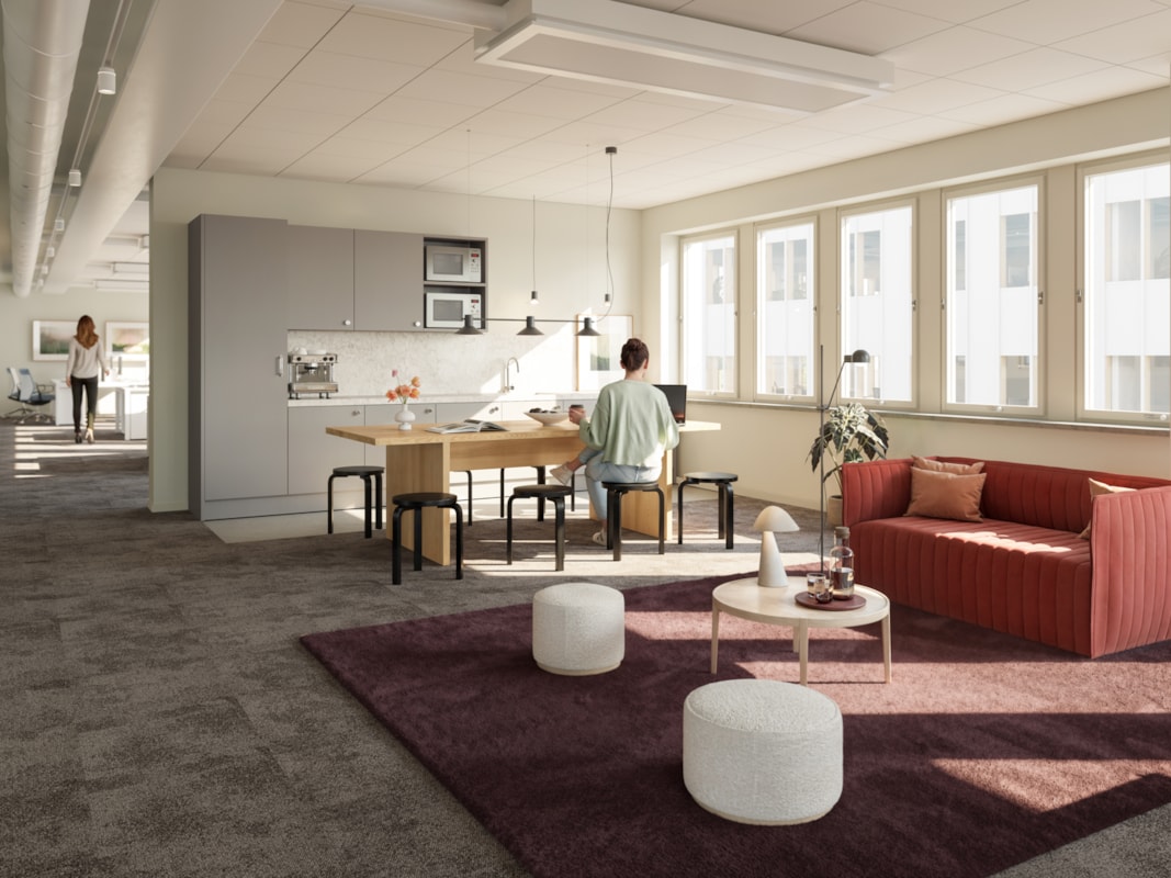 Här kommer ni sitta i trivsama lokalytor där det går att hyra ett plan om 472 kvm. Privat terrass och en intilliggande paus yta som är inklädda i stora fina glaspartier. Fin balans mellan enskilt arbete och gemensamma arbetsytor.