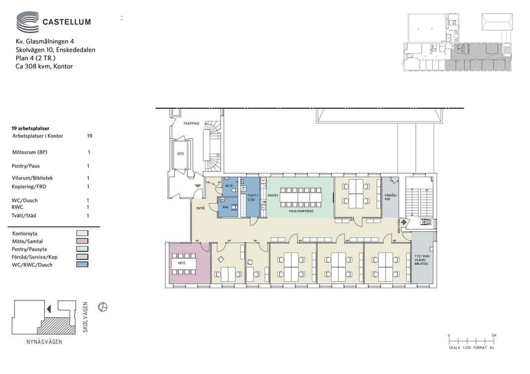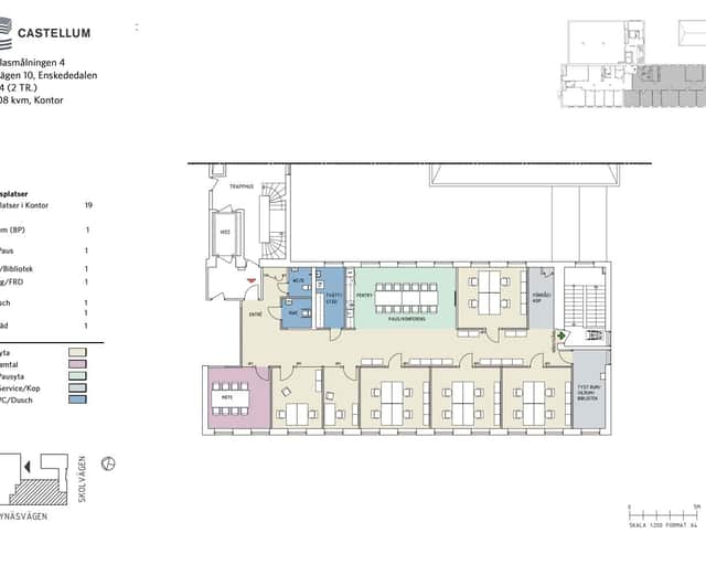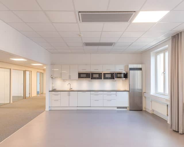 Kontorslokalen har en välplanerad planlösning och extra fint ljusinsläpp då lokalen är placerad högst upp i huset.