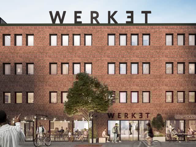 På Werket är det fokus på hållbarhet och hälsa ur alla aspekter. Inredningskonceptet är framtaget utifrån grunderna i neurodesign, med naturnära färger, naturligt ljus och gröna växter. Det gör hjärnan mer kreativ och välmående, enligt forskarna. Och sen är det rätt trevligt med fågelkvitter på toaletten.