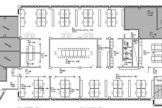 I dagsläget är lokalen rumsindelad och kontorsrummen ligger i fil.
