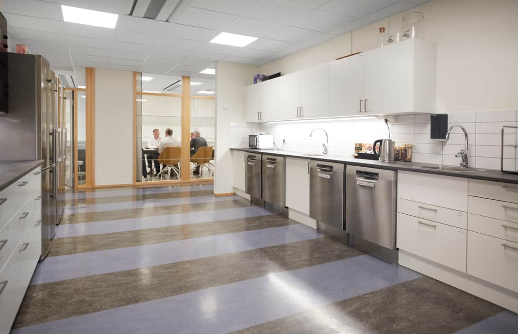 Högst upp finns en takterrass, ett perfekt ställe att njuta av sin lunch eller ta en kaffe med kollegorna.