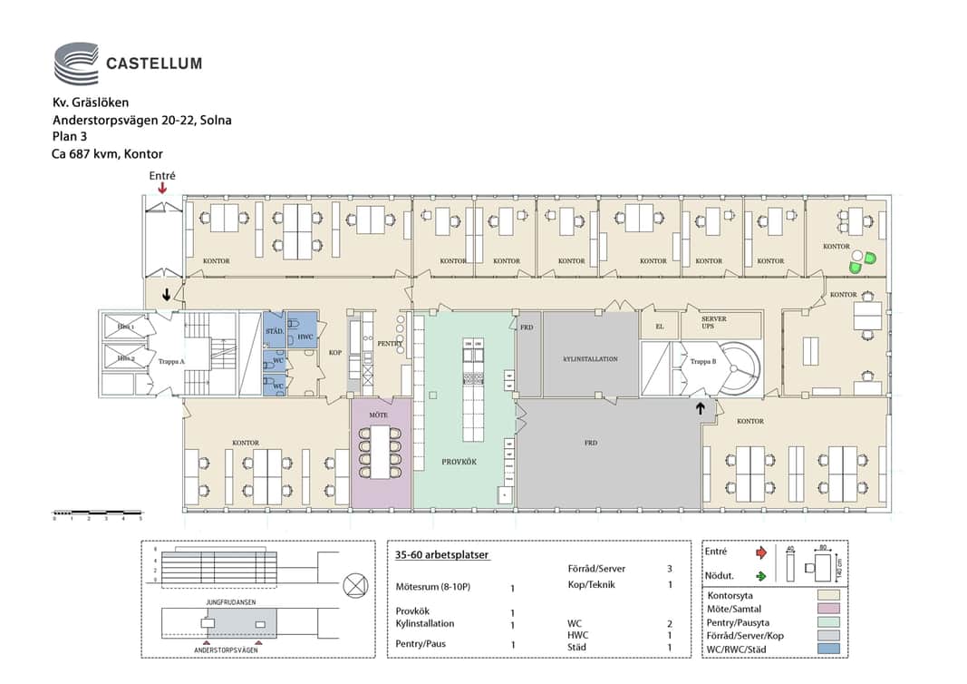 Både tunnelbana och buss ligger endast några minuters promenad från ditt kontor. Tar du bilen ligger de stora lederna E:4an och E:18 precis intill. Solna Centrum har du på 5 minuters promenadavstånd. Inom10 min är du i Stockholm city och på en halvtimme så är du redo att ta flyget på Arlanda. Sundbybergs centrum ligger bara ett stenkast från ditt kontor och här tar du enkelt både pendeltåg, tvärbanan, bussar, fjärrtåg och t-banan och samtidigt kan du göra alla dina ärenden eftersom all service du behöver finns lättillgängligt.
