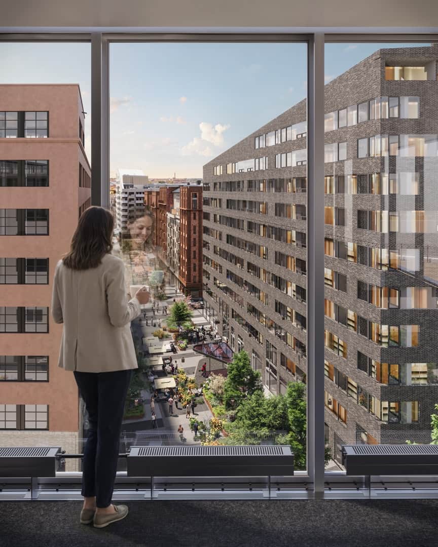 I gatuplan finns hjärtat. Där husets entréer, reception och kundmottagning, mötesytor, restaurang, lounge och café vävs samman till en levande mötesplats för både medarbetare och gäster. Härifrån finns även flera smidiga kopplingar – både hissar och trappor – upp till de övriga, mer privata våningsplanen. En våning ned finns cykelrum, omklädningsrum och parkeringsgarage.