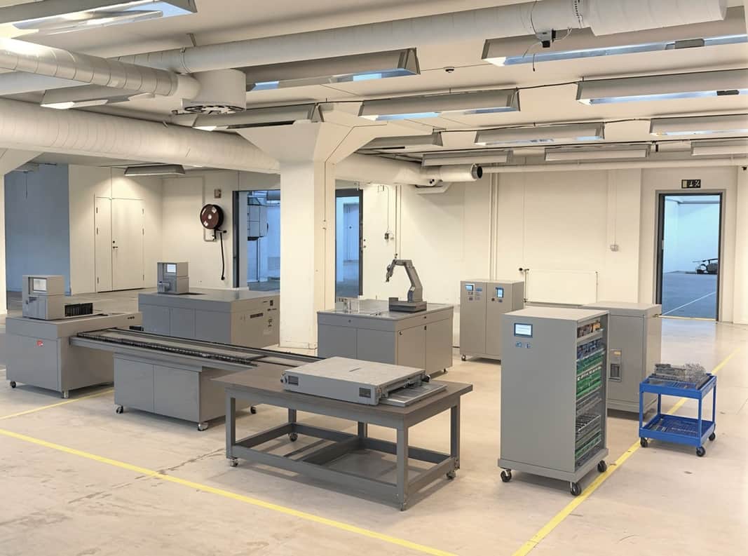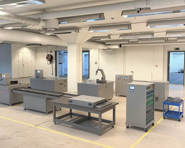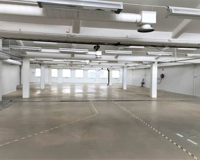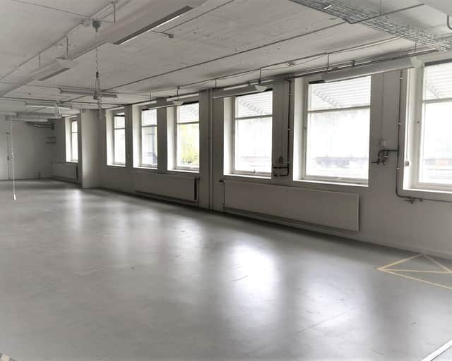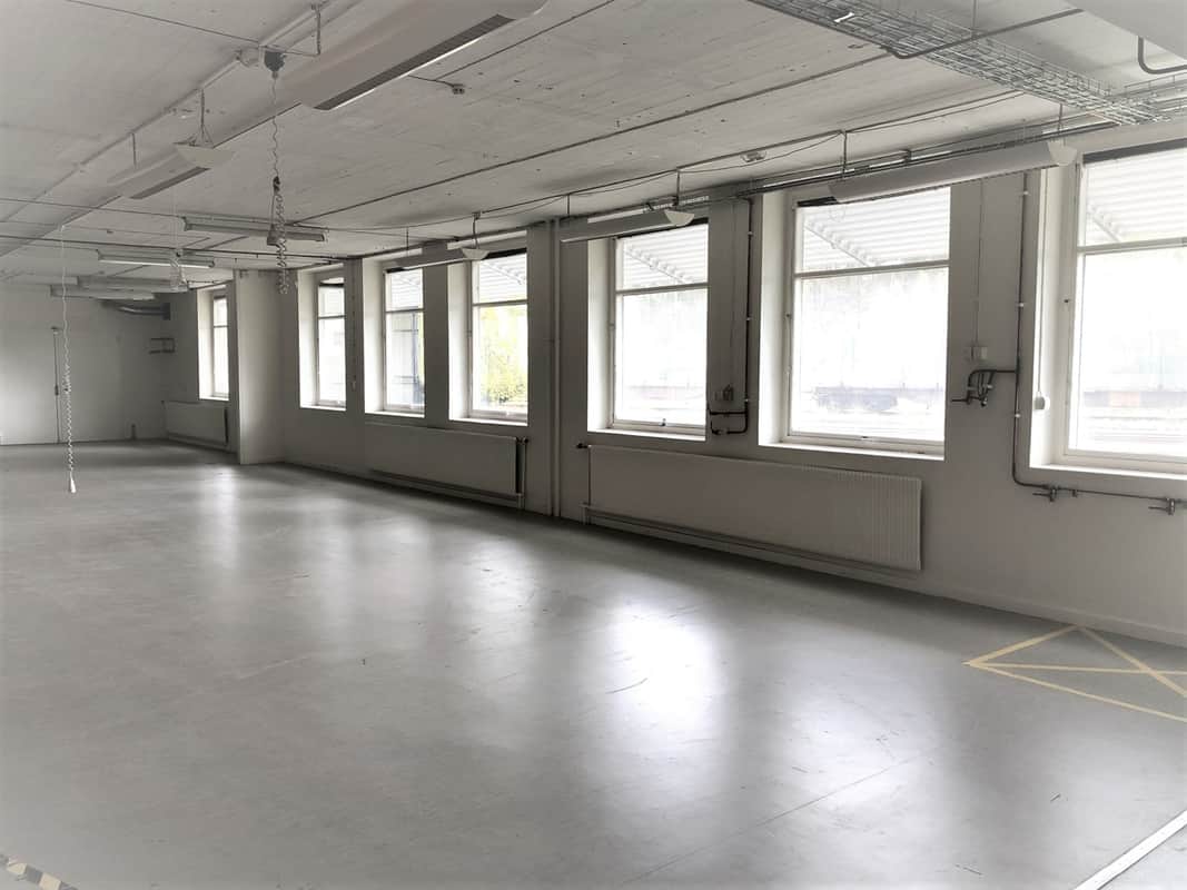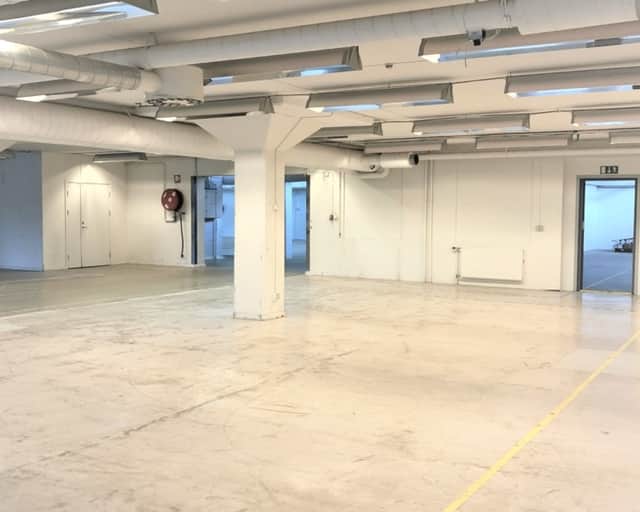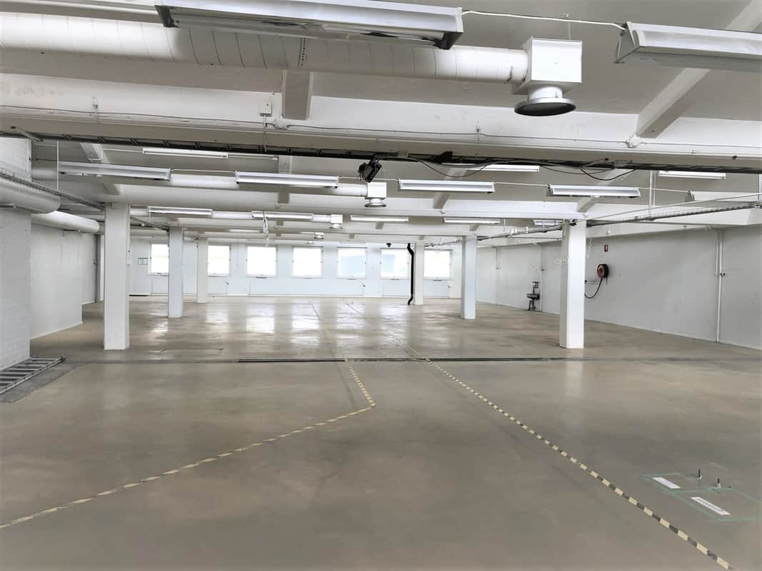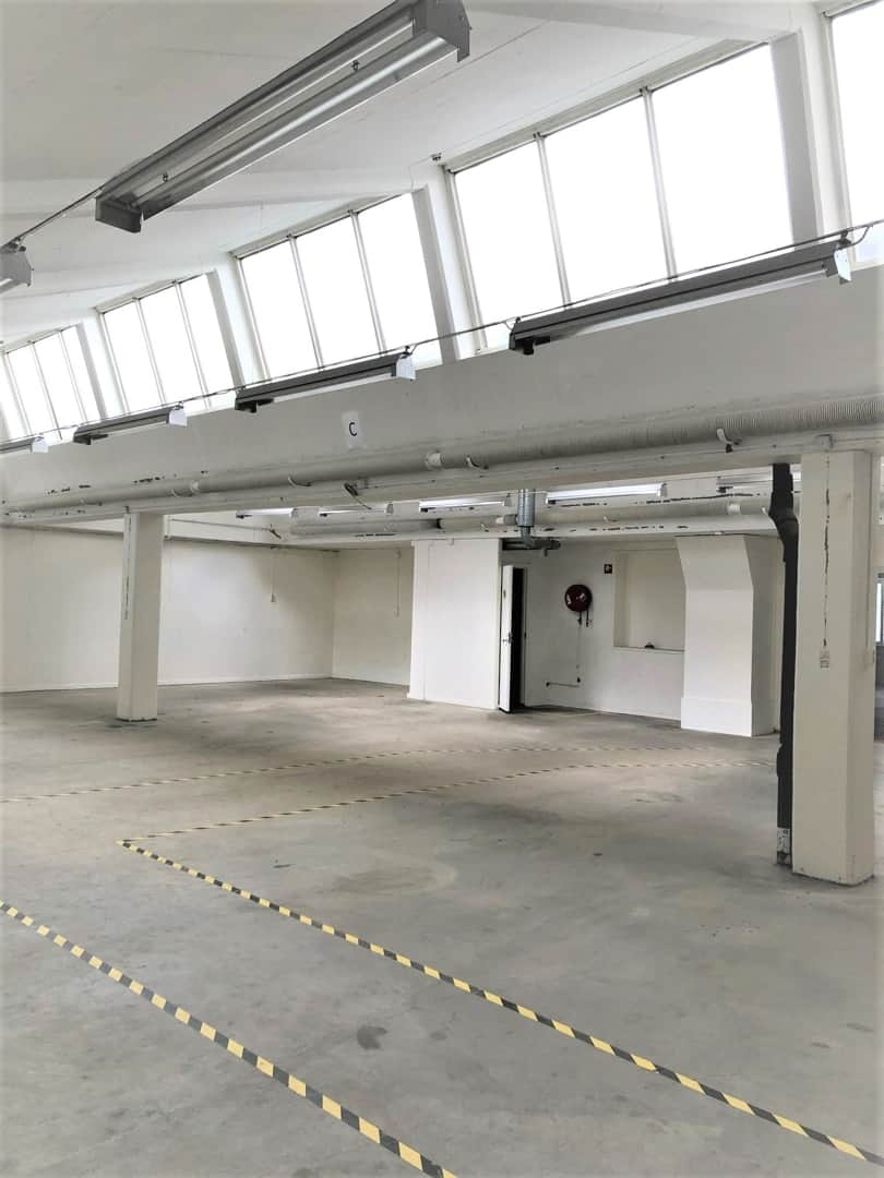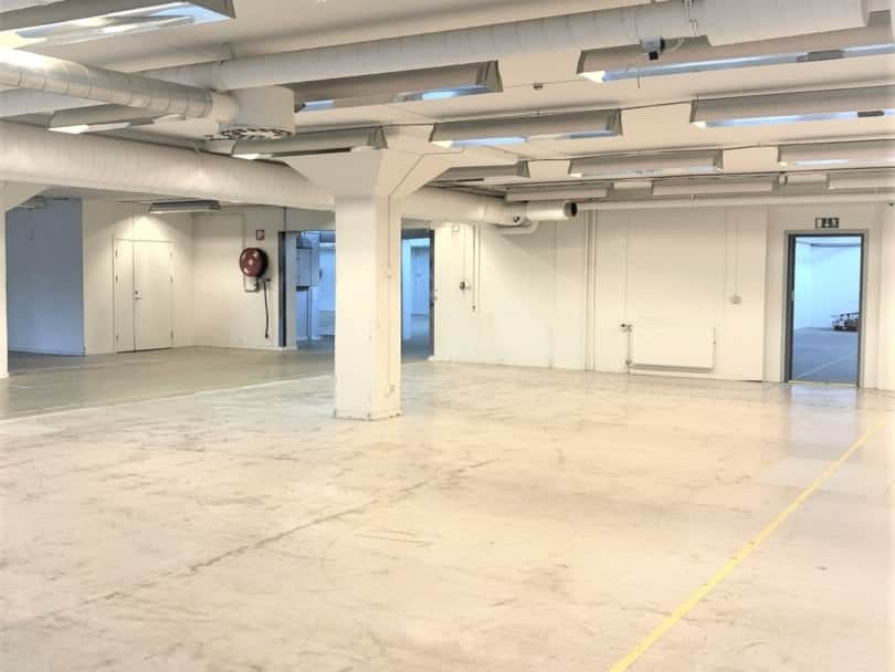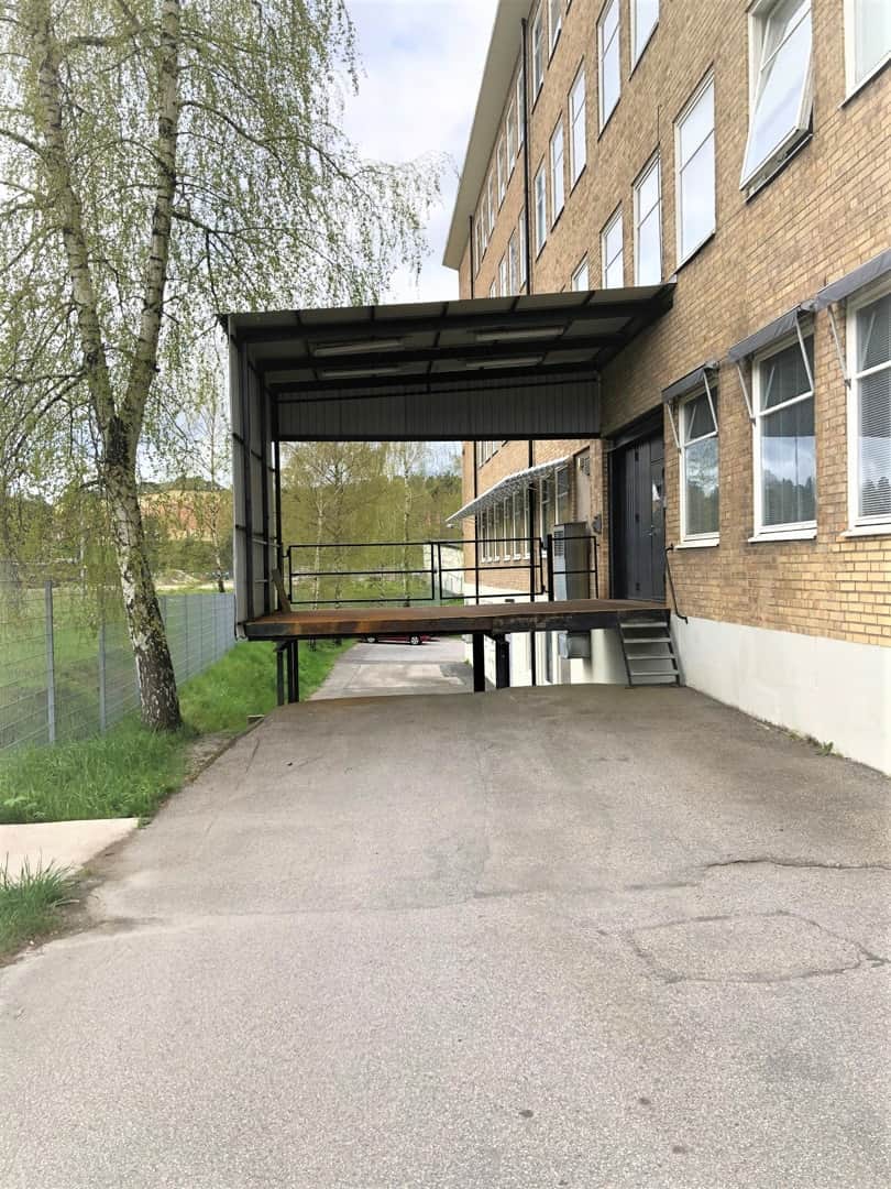 Via egen lastbrygga har man smidig in- och utlastning. Det är bra ljusinsläpp genom många fönster samt takfönster.