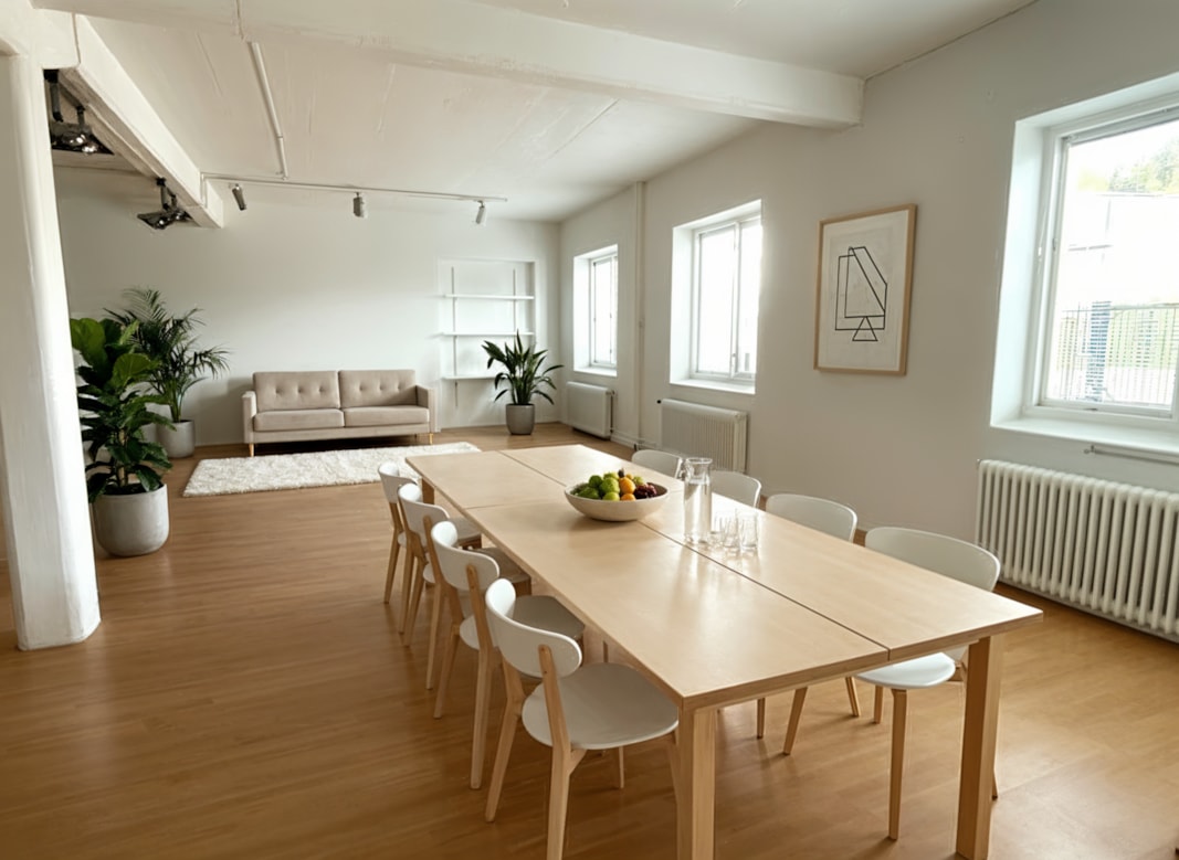 Två större öppna ytor samt gemensamhetsytor så som pausrum, wc, duschar.