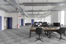 Miljön i kontoret har en industriel touche som skvallrar om byggnades historia.