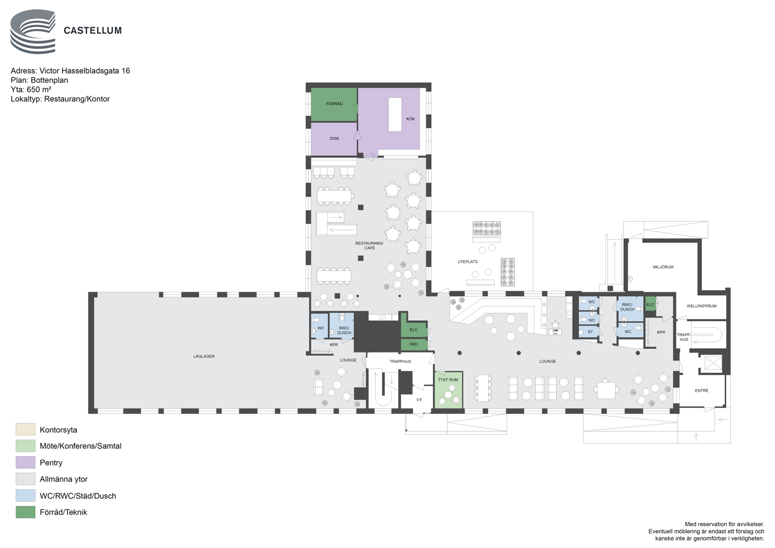 Yta: ca 650 kvm (möjligt att dela till 222/428 kvm eller utöka till med mer kontor på plan 2)