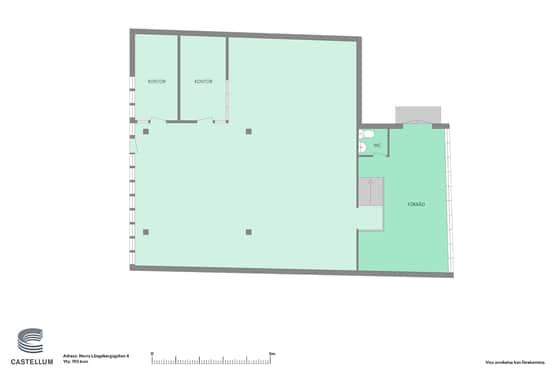 Det är möjligt att hyra del av ytan om 222 kvm alternativt 428 kvm, och det finns möjlighet att utöka ytan med kontorsytor ytterligare med kontorsytan våningen ovanför för den som önskar mer utrymme.