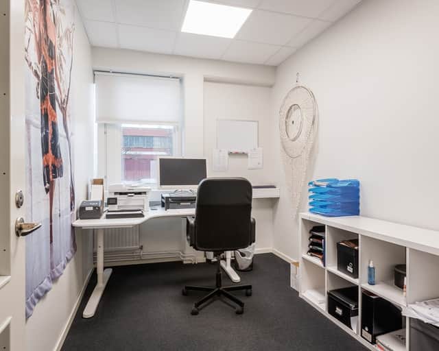 Smart planerad för att möta olika verksamheters behov och erbjuder en perfekt balans mellan arbetsytor och funktionella utrymmen: Fyra separata kontorsrum – Idealiskt för koncentrerat arbete, möten eller som privata arbetsplatser för ledning och nyckelpersoner. Öppen yta för showroom – En ljus och rymlig yta som lämpar sig utmärkt för att presentera produkter, ta emot kunder eller skapa en inspirerande arbetsmiljö. Lager – Väl tilltaget lagringsutrymme med direkt access till en lastkaj, vilket förenklar leveranser och logistikhantering. Pausyta – En trevlig och avkopplande plats för personalen att ta en paus, äta lunch eller mötas informellt. Planlösningen är både praktisk och flexibel, vilket gör det enkelt att anpassa lokalen efter din verksamhets behov – oavsett om du driver en butik, lagerhållning, kontorsverksamhet eller showroom.