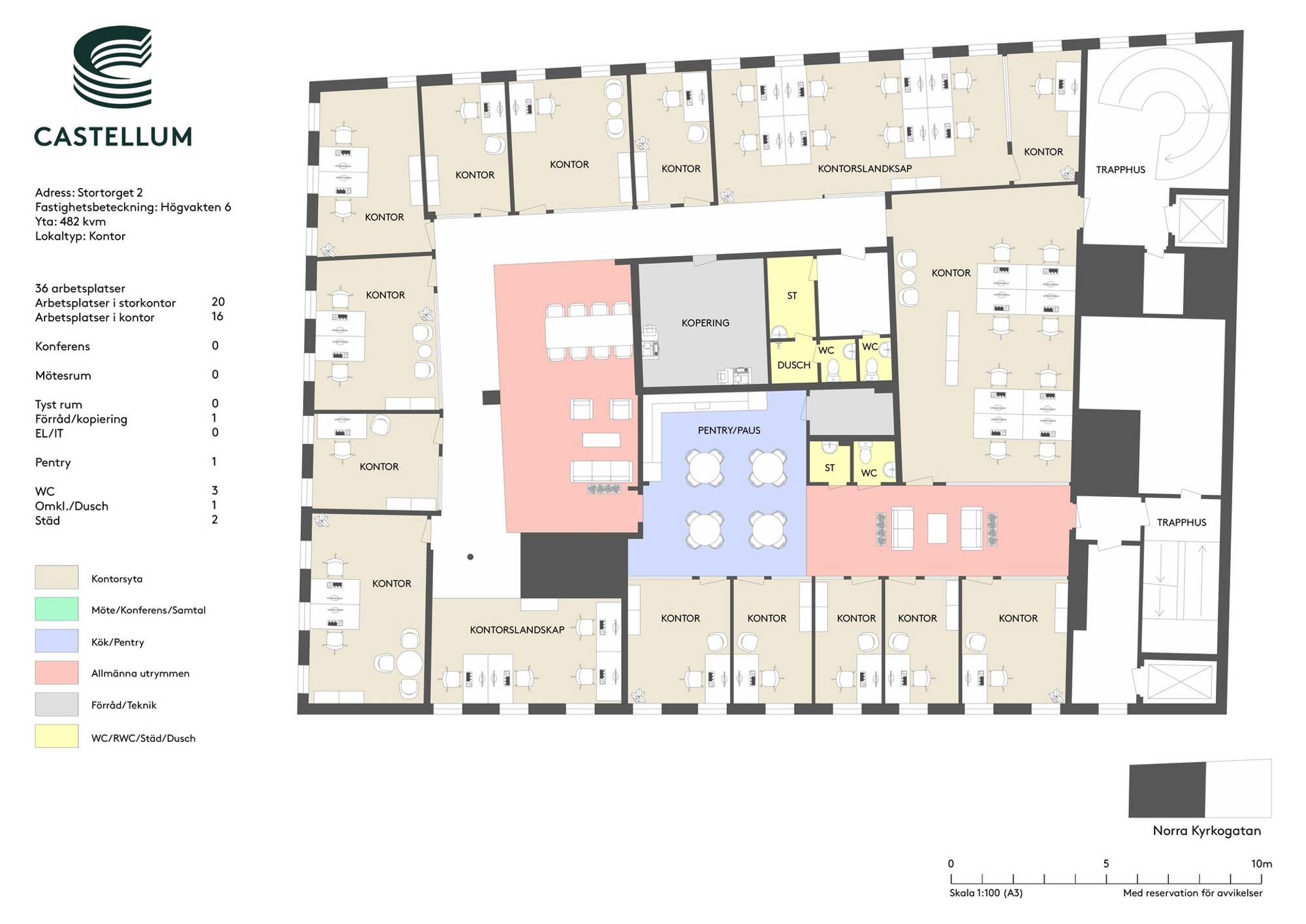 Planlösningen är flexibel och kan anpassas efter hur ditt företag arbetar. Oavsett om ni föredrar öppna ytor, enskilda kontor eller en kombination finns goda möjligheter att skapa en funktionell arbetsmiljö.