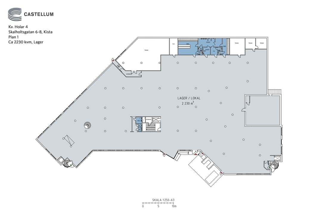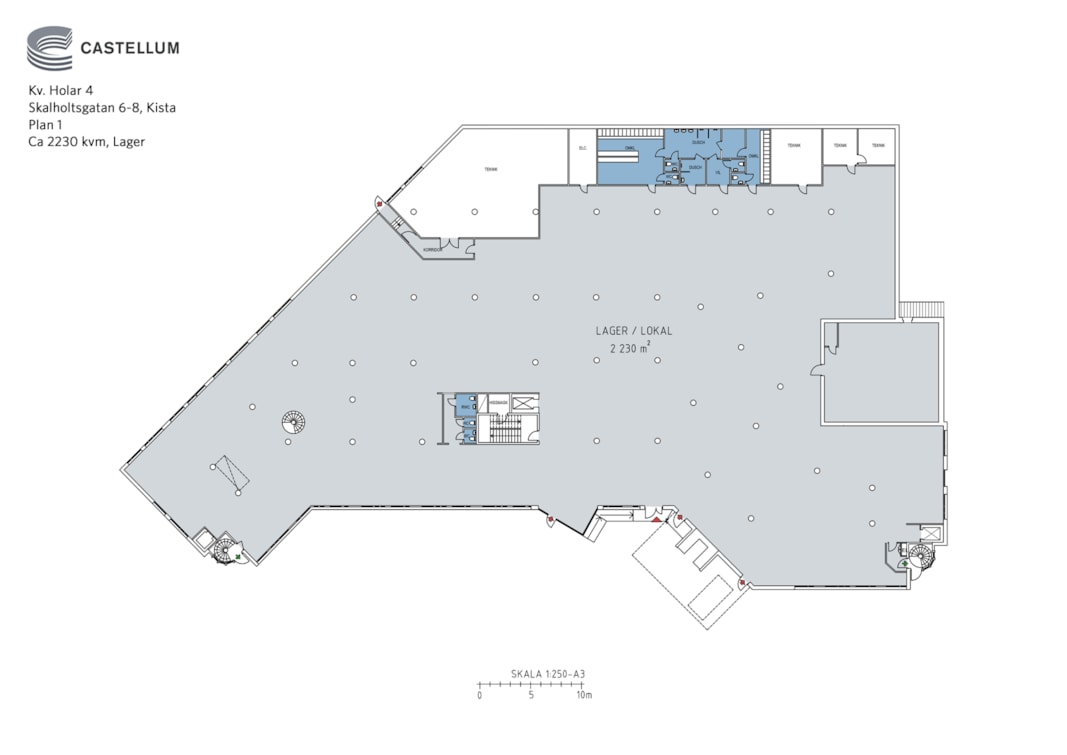I fastighetens nedre plan finns möjlighet till logistik- alt. produktionsytor upp till 2 400 kvm med egen lastkaj.