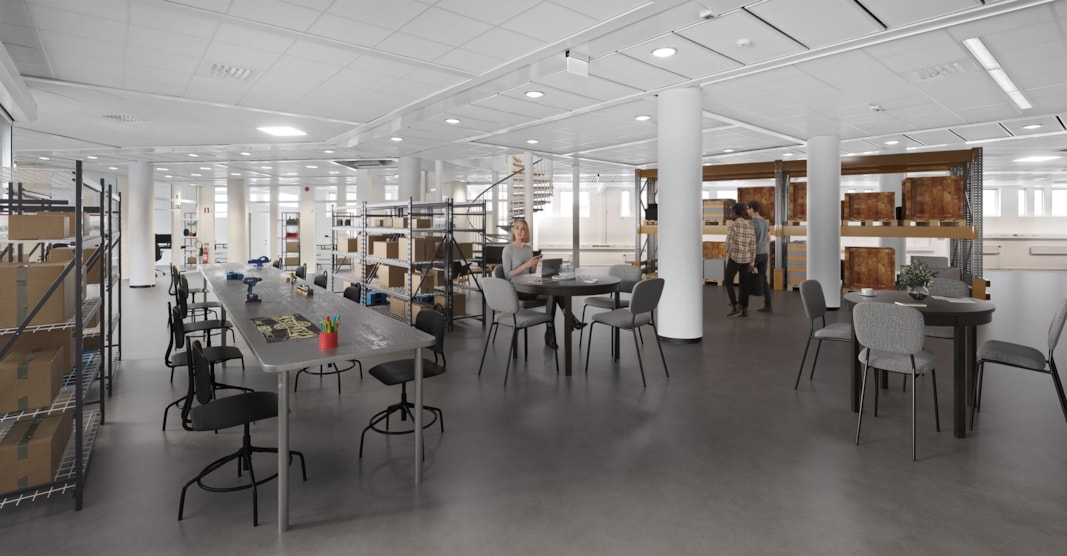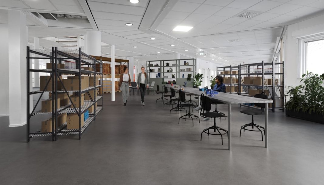 Lokalen erbjuder stor flexibilitet för verksamheten och en bra kombination av ytor för såväl logistik som kontor.