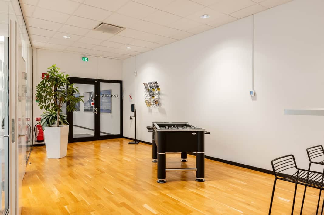 Lokalen har ett stort öppet kontorslandskap med plats för upp till 25 medarbetare. Två mötesrum i olika storlekar ger flexibilitet för både interna möten och kundsamtal. Här finns också utrymme för en trivsam loungedel, perfekt för avkoppling eller informella möten.