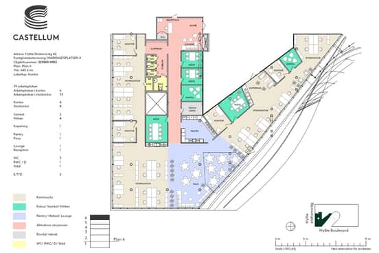 Lokalen erbjuder ett generöst och ljust öppet kontorslandskap med plats för upp till 25 medarbetare, vilket skapar goda möjligheter för samarbete, kommunikation och teamkänsla. Två mötesrum i olika storlekar möjliggör allt från snabba avstämningar till längre kundmöten och interna workshops. De är strategiskt placerade för att enkelt kunna nås från både kontorsytan och entrén. Utöver detta finns det plats för en trivsam loungedel – en inbjudande yta där medarbetare kan koppla av med en kaffe, ha informella samtal eller mingla med kunder i en mer avslappnad miljö.