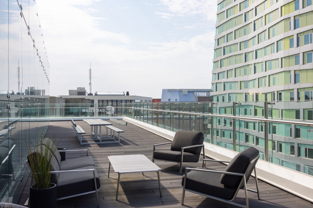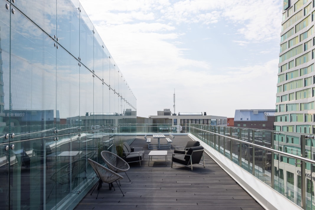 En av lokalens absoluta höjdpunkter är den privata takterrassen som bjuder på en fantastisk utsikt över Hyllie och Malmö. Här kan ni njuta av inspirerande pauser, informella möten eller varför inte Afterwork med kollegorna?