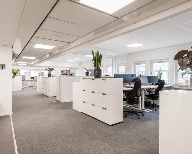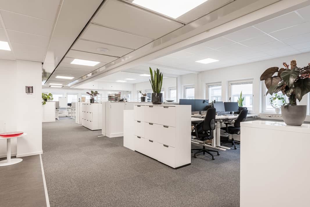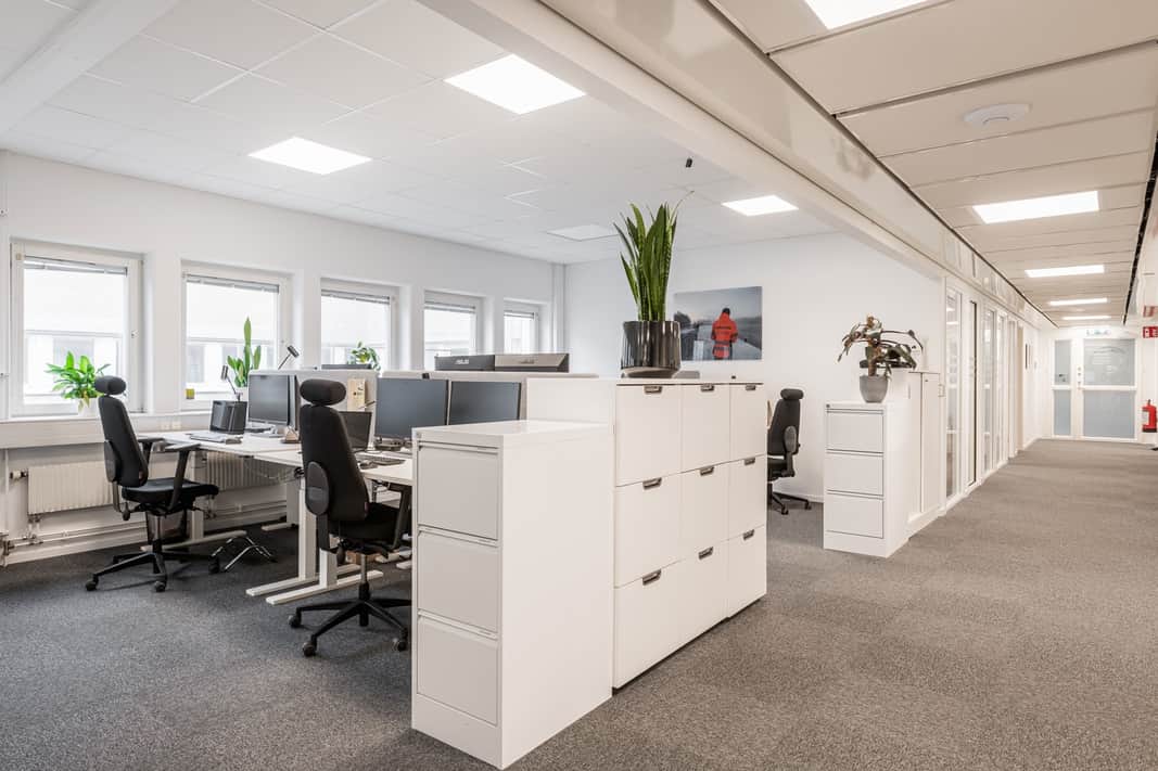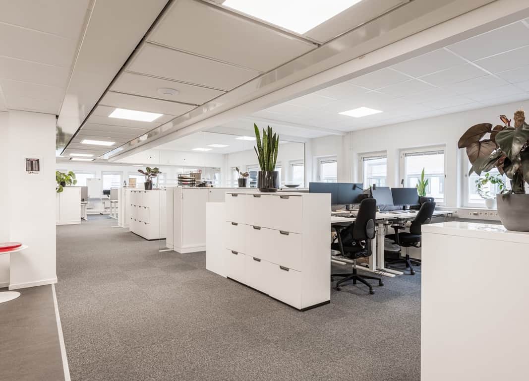 Ljust och modernt kontor med öppna ytor.