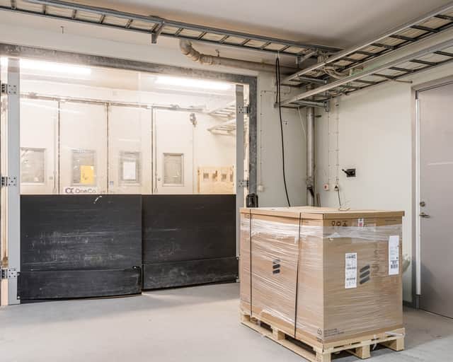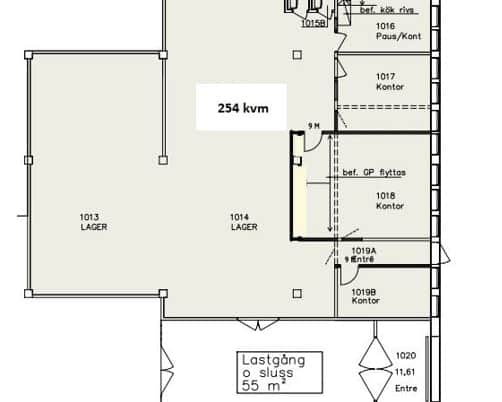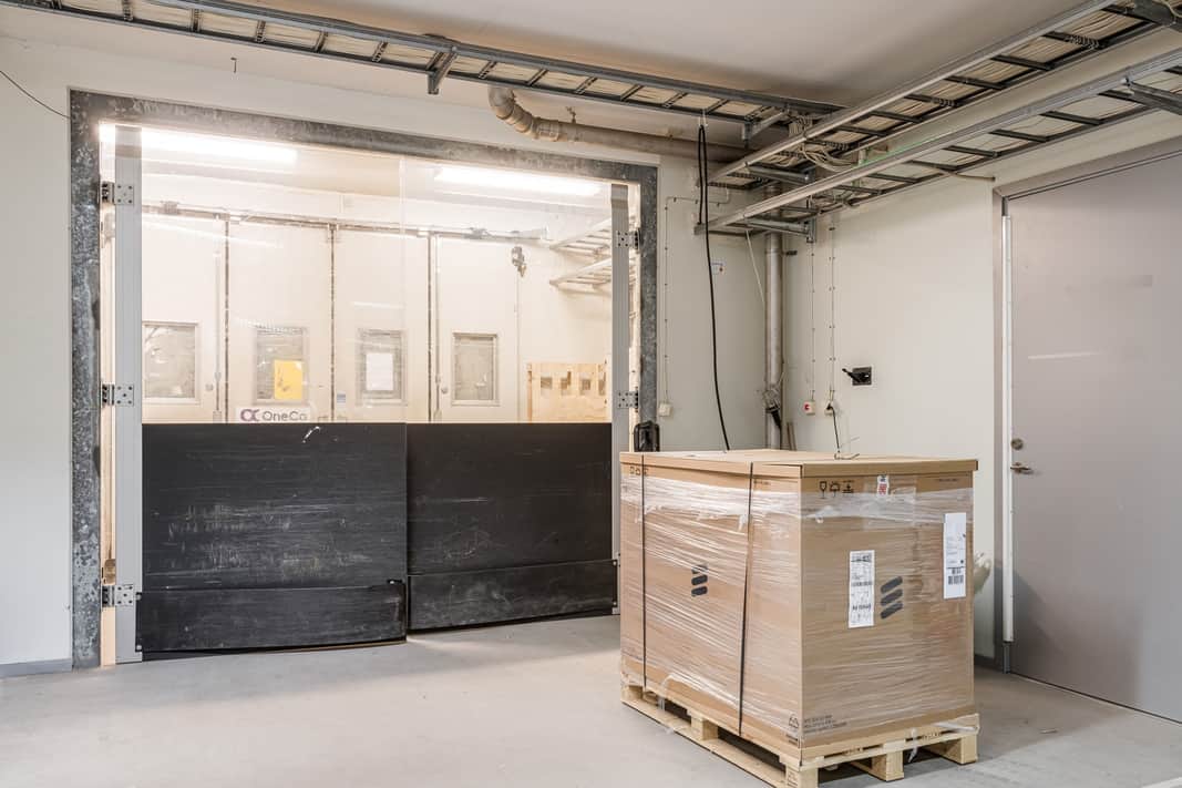 Inlastningen sker via en gemensam sluss och sen in till lokalen genom dubbeldörrar. Utanför lokalen kan det finnas möjlighet att hägna in en liten egen yta.