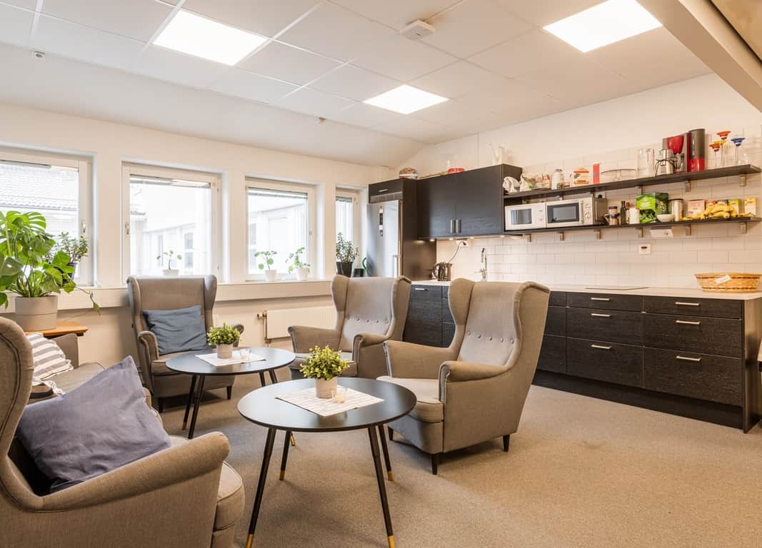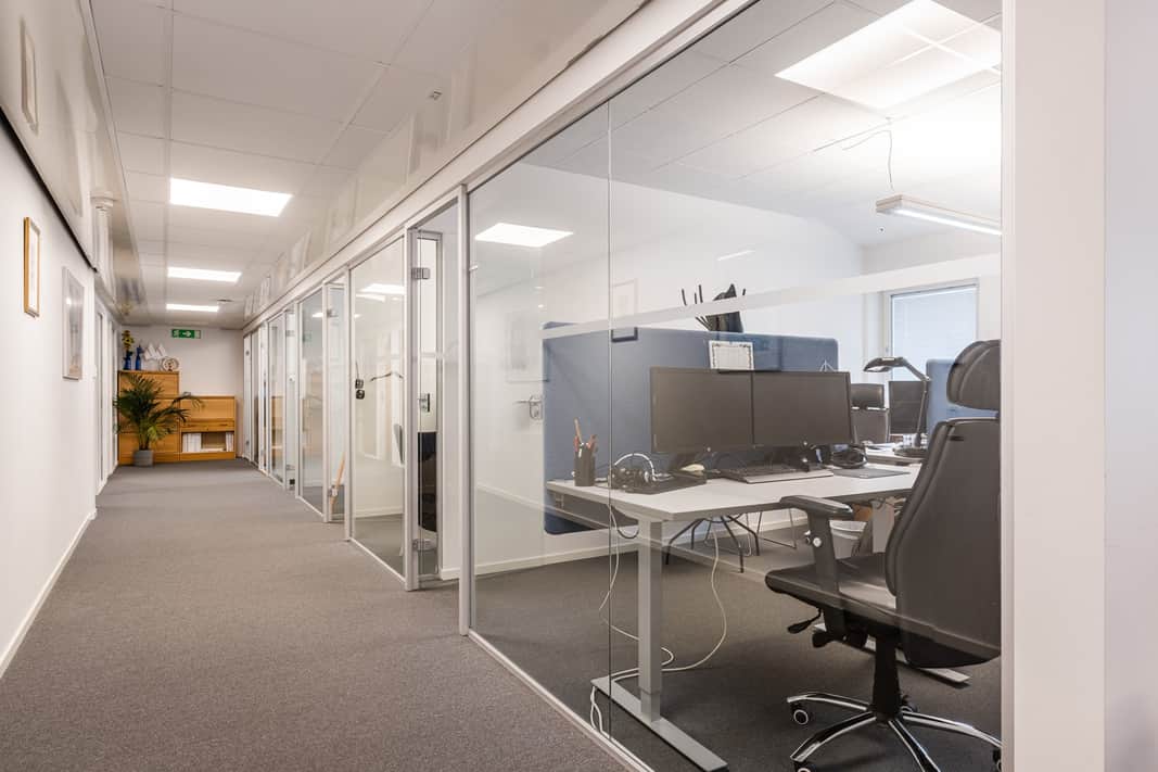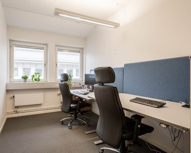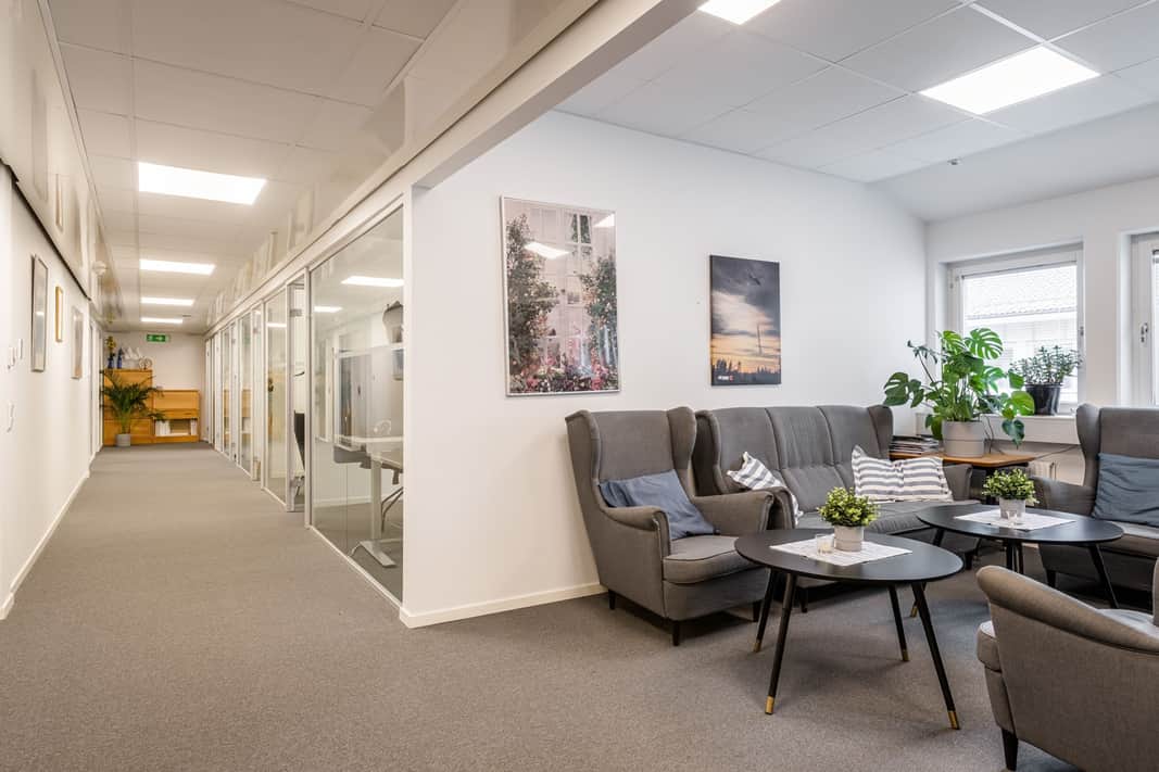 Kontorsdelen är ljus och trivsam med ett fint ljusinsläpp som ger en öppen och inbjudande arbetsmiljö. Planlösningen är väl genomtänkt och erbjuder en flexibel mix av öppet kontorslandskap, separata kontorsrum samt tysta rum för möten eller fokuserat arbete. Detta skapar en bra balans mellan samarbete och koncentration.
