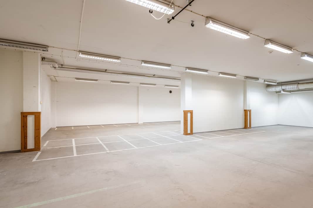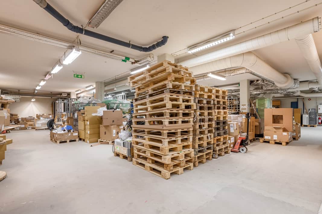 Lagerdelen är smidig att arbeta i med markport och delad sluss, vilket underlättar in- och utleveranser. De generösa ytorna skapar goda förutsättningar för effektiv hantering, förvaring och distribution.