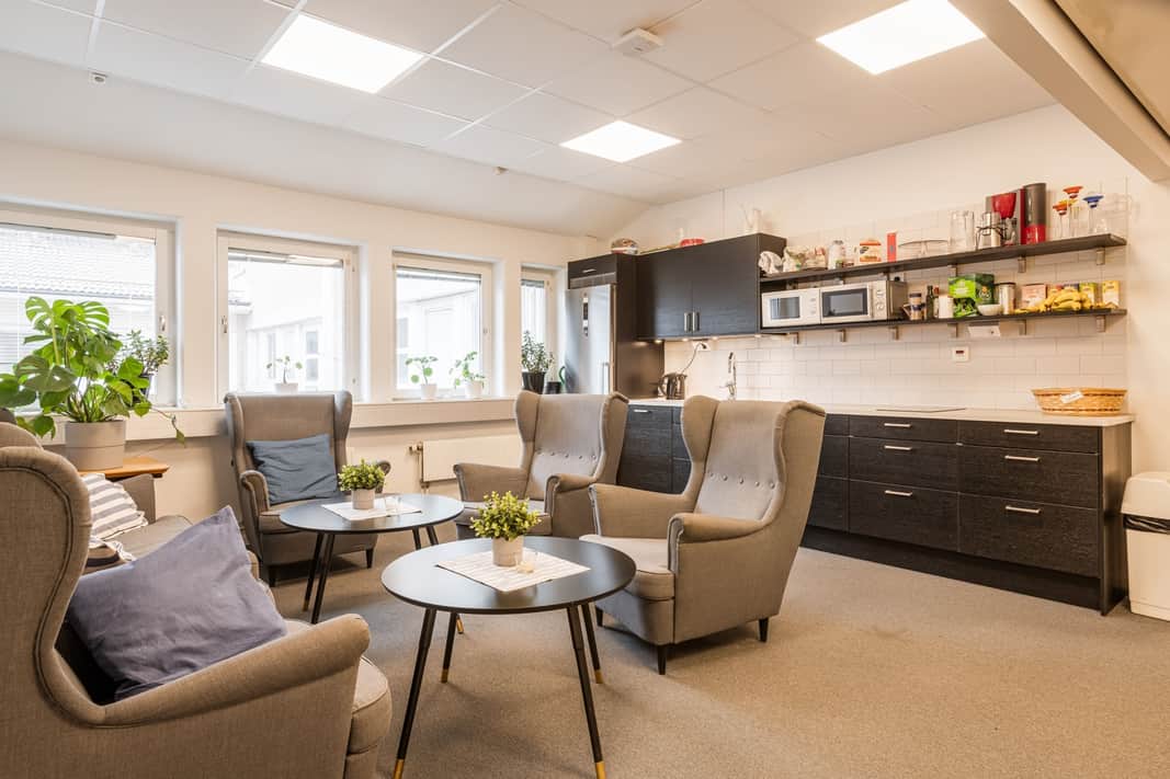 I entrén har vi en receptionstjänst under dagtid, där du kan få hjälp med post,felanmälan , nycklar och konferensbokningar.