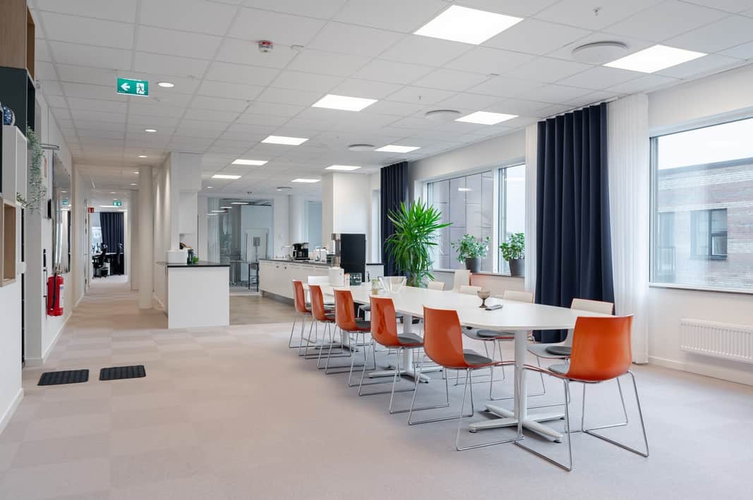 Lokalen är ljus, välplanerad och ger goda förutsättningar för ett hållbart och trivsamt arbetsklimat. Här finns generösa fönsterpartier som ger ett naturligt ljusinsläpp, bra ventilation och moderna tekniska lösningar. Fastigheten är miljöcertifierad och driftas med omtanke om både människa och miljö.