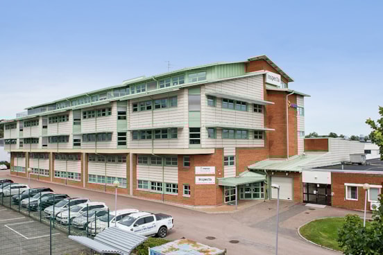 Kontors- och gemensamhetsytor samt en ny lagerdel som kommer att byggas.