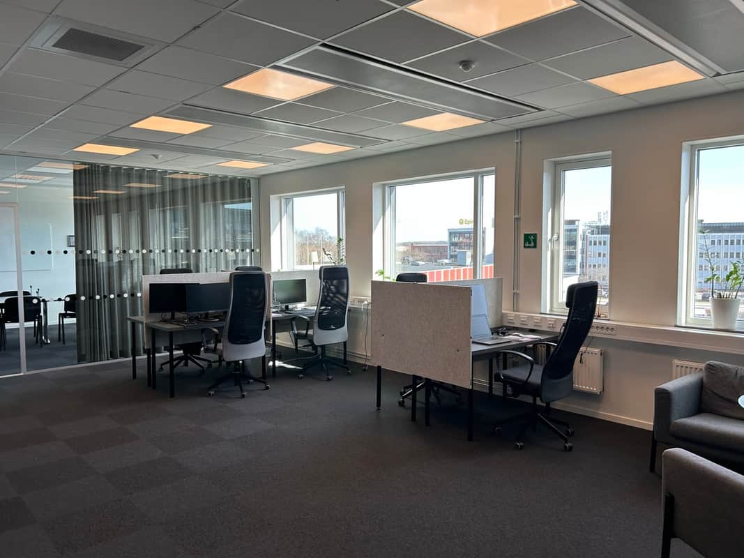 Lokalen erbjuder en flexibel planlösning med både öppet landskap och privata kontorsrum. Här finns ett större konferensrum, mindre mötesrum och teamsrum för effektivt samarbete. Belägen på 4:e våningen, nås via två trappor.