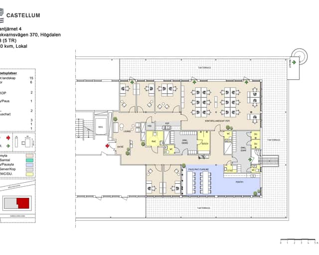 Högst upp i fastigheten hittar du detta trivsamma och ljusa kontor med en härlig terrass som sträcker sig längs hela lokalen. Här får du en unik arbetsmiljö med gott om naturligt ljus och en härlig utomhusyta för möten eller pauser.