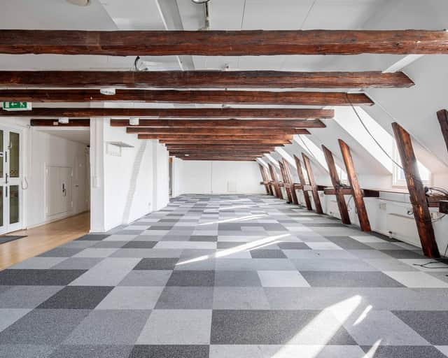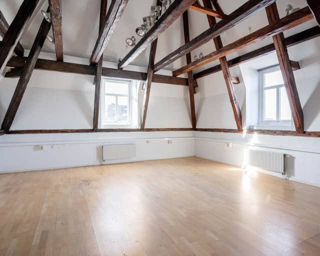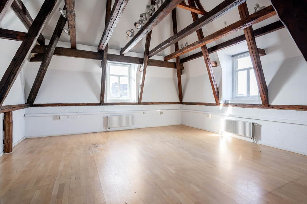 Charmig vindsvåning med öppet kontorslandskap och flexibla mötesytor