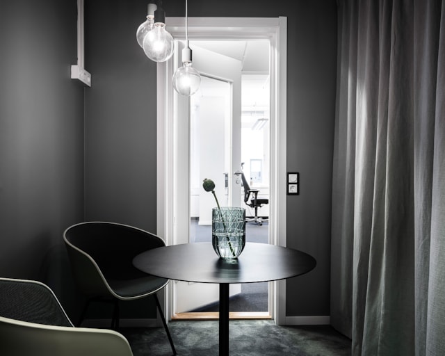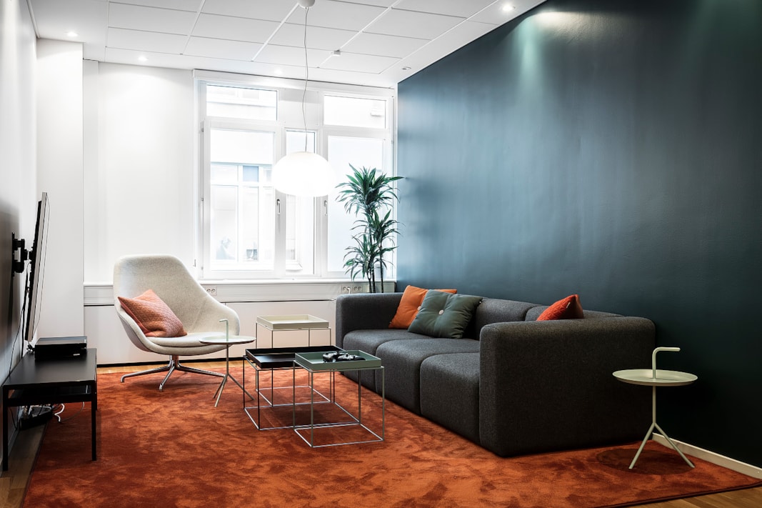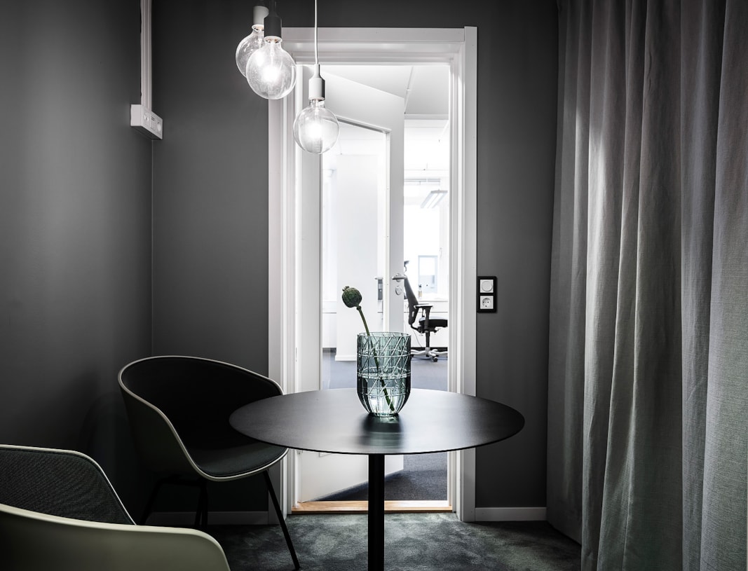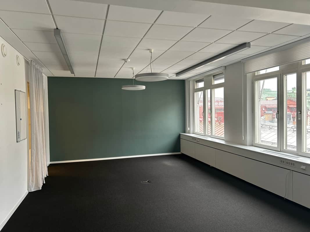 Med sitt höga och insynsskyddade läge i huset erbjuds både avskildhet och ett härligt ljusinsläpp. Färgsättningen är modern och inbjudande, och varje kvadratmeter är genomtänkt för att skapa en inspirerande arbetsmiljö.